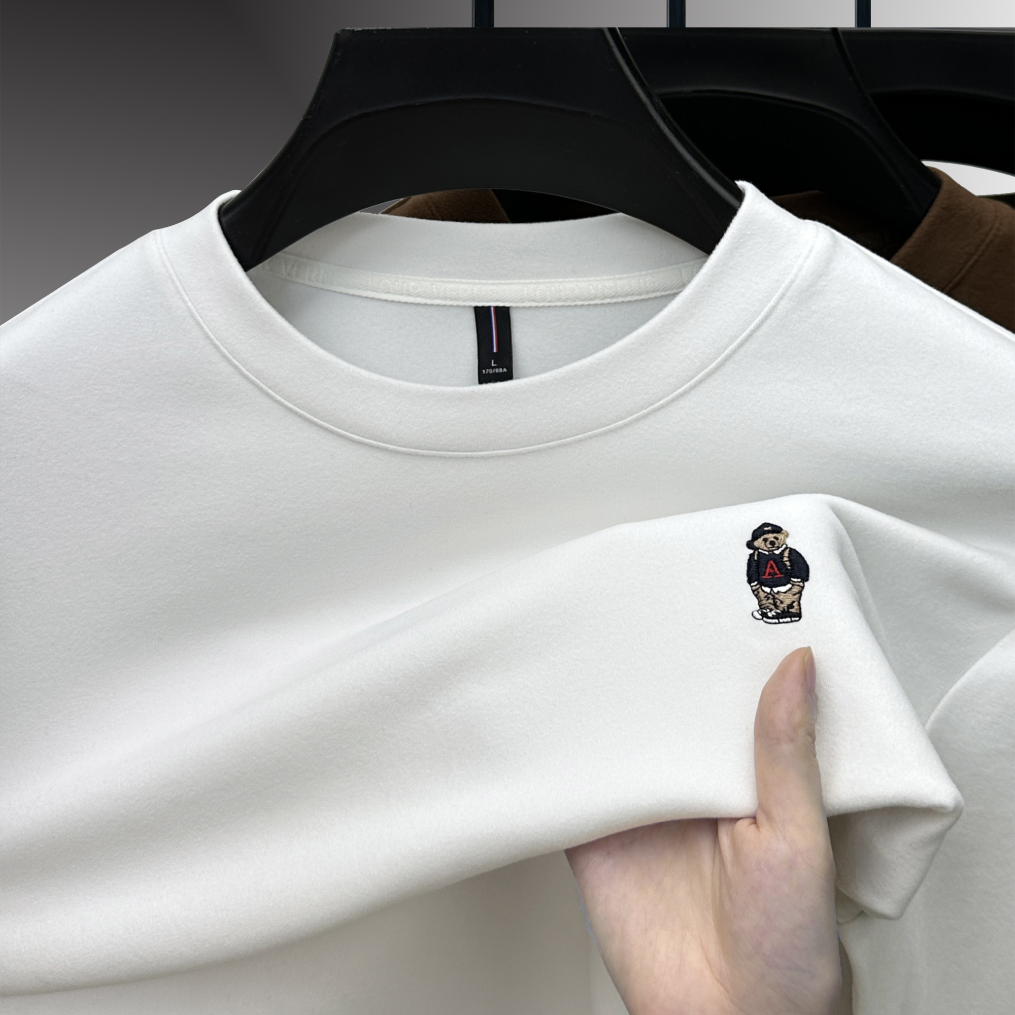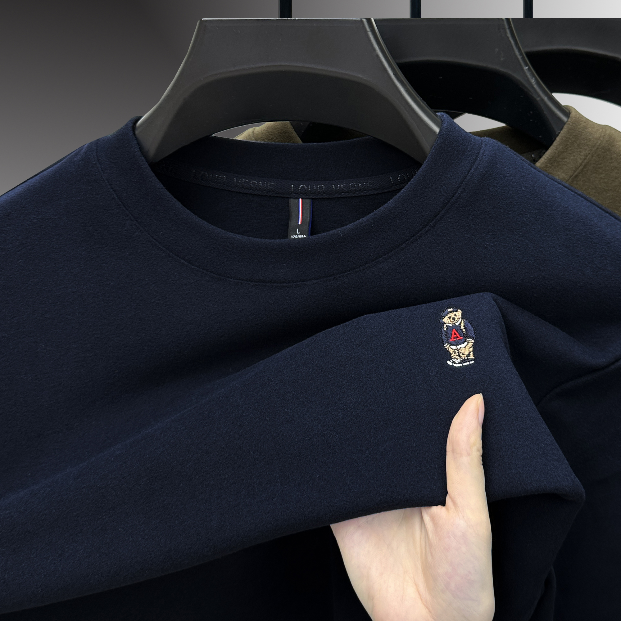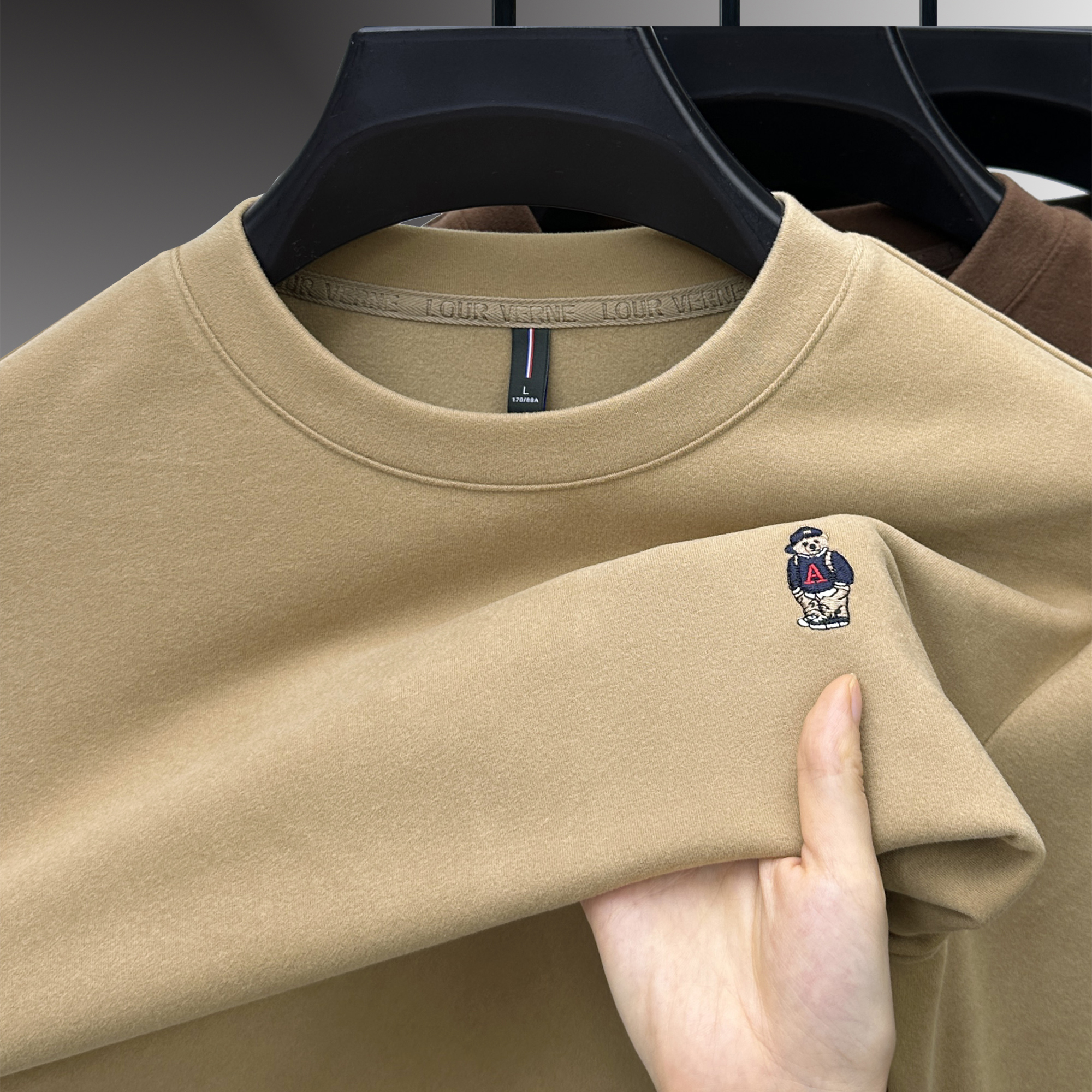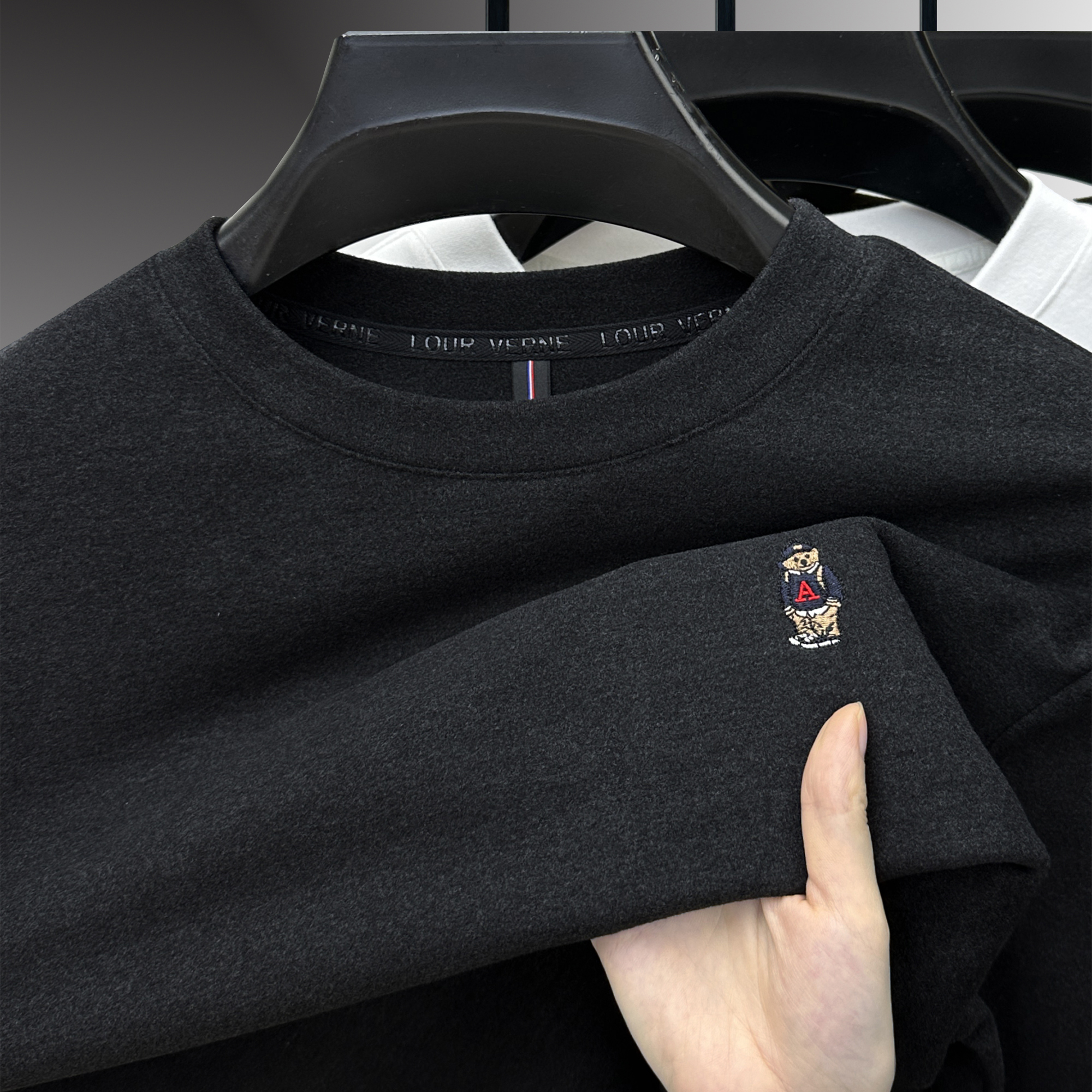 T恤卡通刺绣秋冬保暖打底衫 圆领长袖 纯色百搭 男士 双面德绒打底衫