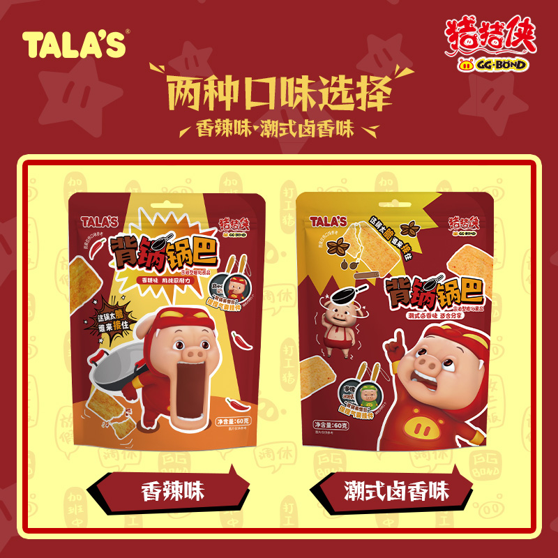 TALA S猪猪侠背锅锅巴60g香辣卤香味联名膨化零食附背锅气囊挂件