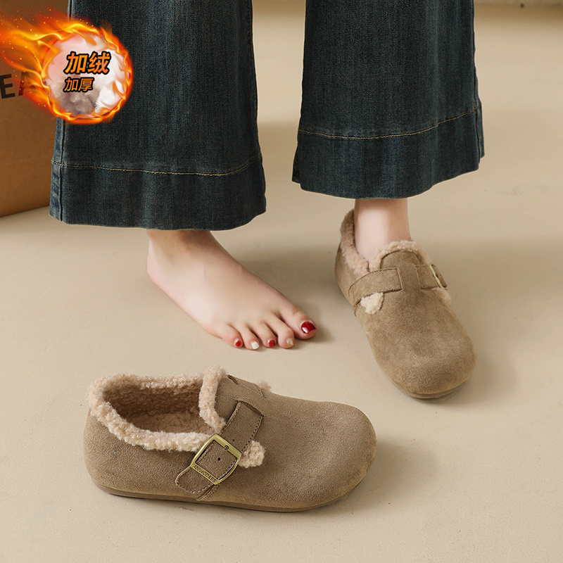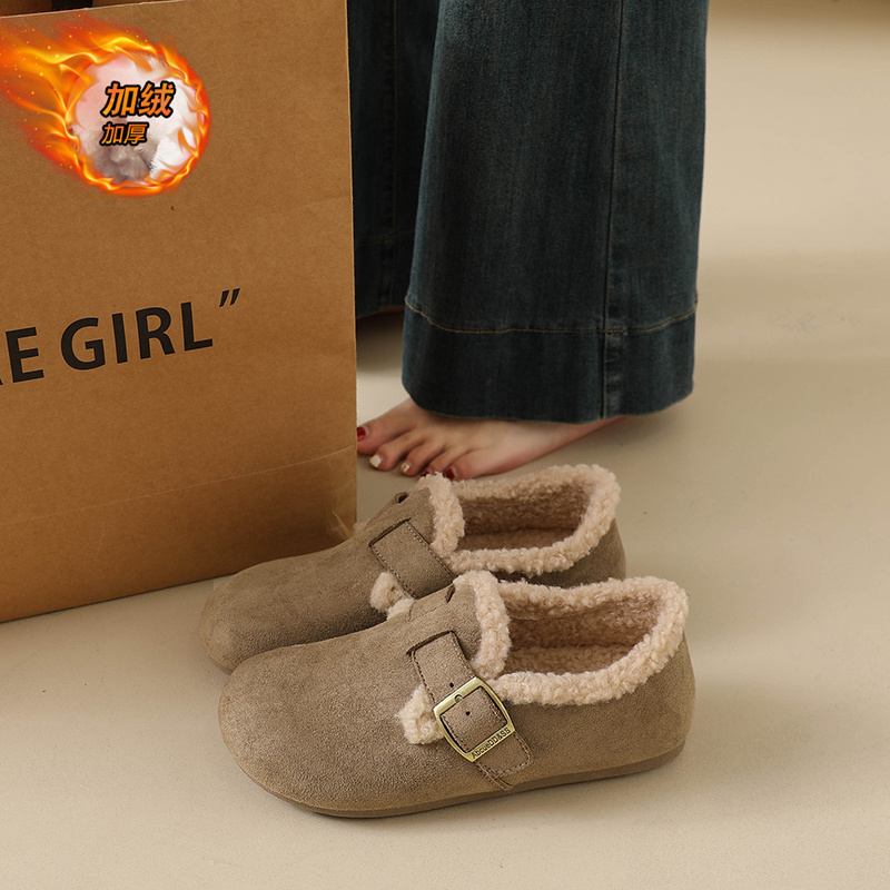 厚底棉鞋 秋冬一脚蹬乐福鞋 子保暖雪地靴 女2025新款 加绒豆豆勃肯鞋