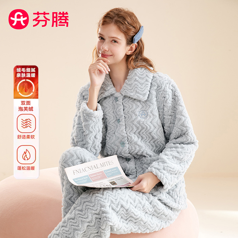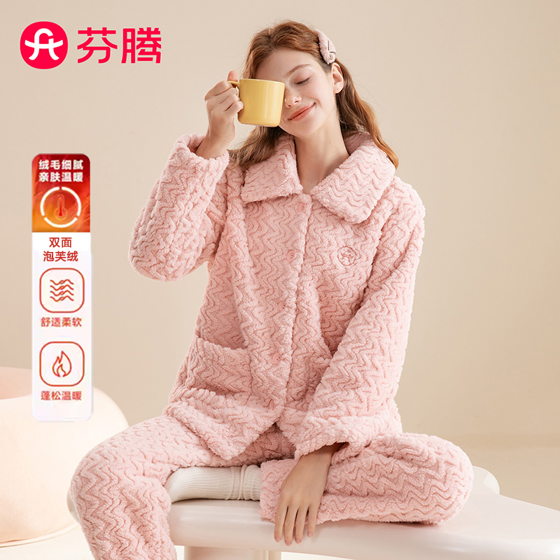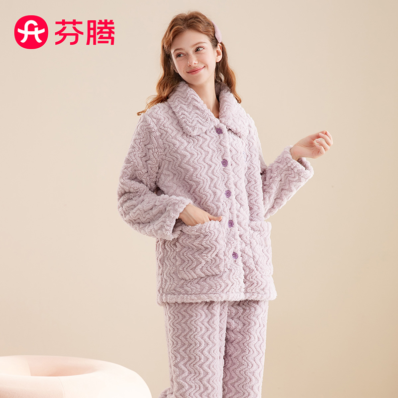 海岛绒可外穿家居服 简约薄款 睡衣女秋冬季 保暖珊瑚绒女士睡衣套装