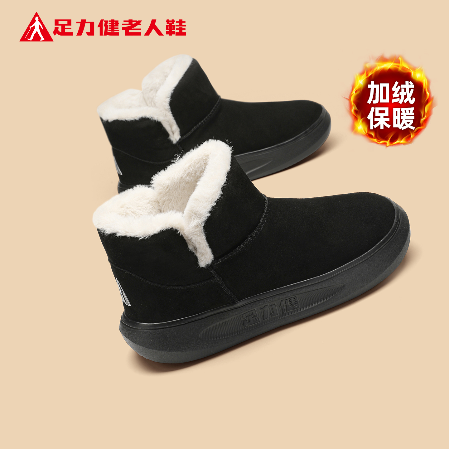 保暖加绒款 雪地靴加厚防水防滑老人棉鞋 高帮中年长筒靴子 男士 冬季