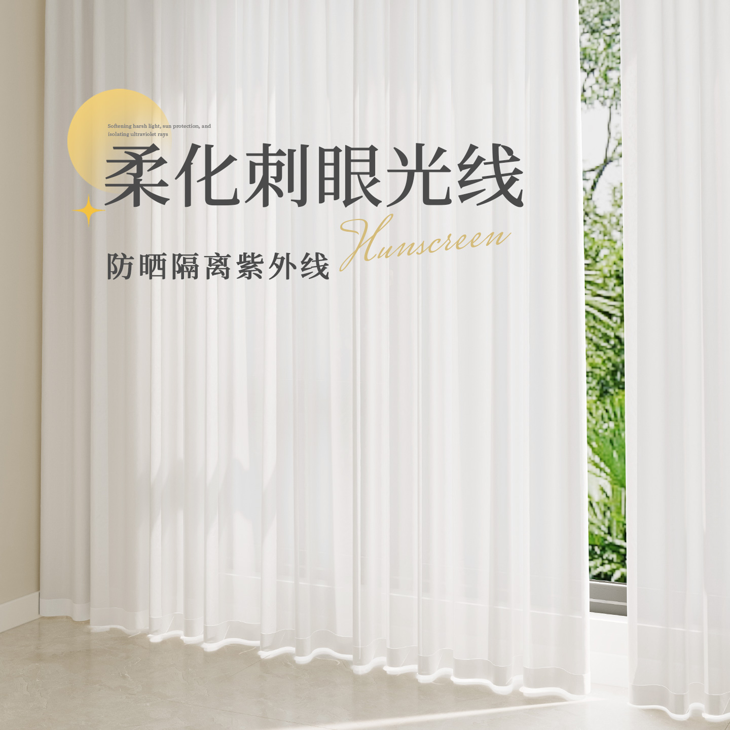 幻影纱窗帘纱帘透光不透人卧室遮阳防晒客厅飘窗2025新款 阳台白纱