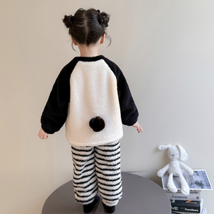 女宝宝珊瑚绒双层加厚保暖法兰绒居家 秋冬季 女童睡衣套装 2025新款