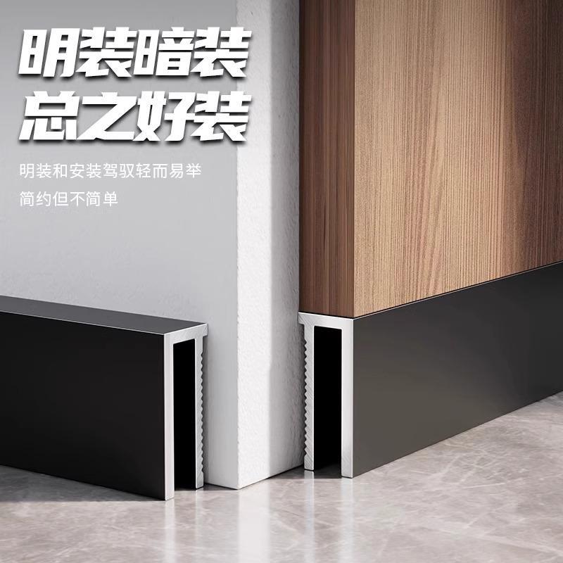 铝合金踢脚线卡扣式 全铝贴脚线条6cm8cm不锈钢超薄极简金属地脚线