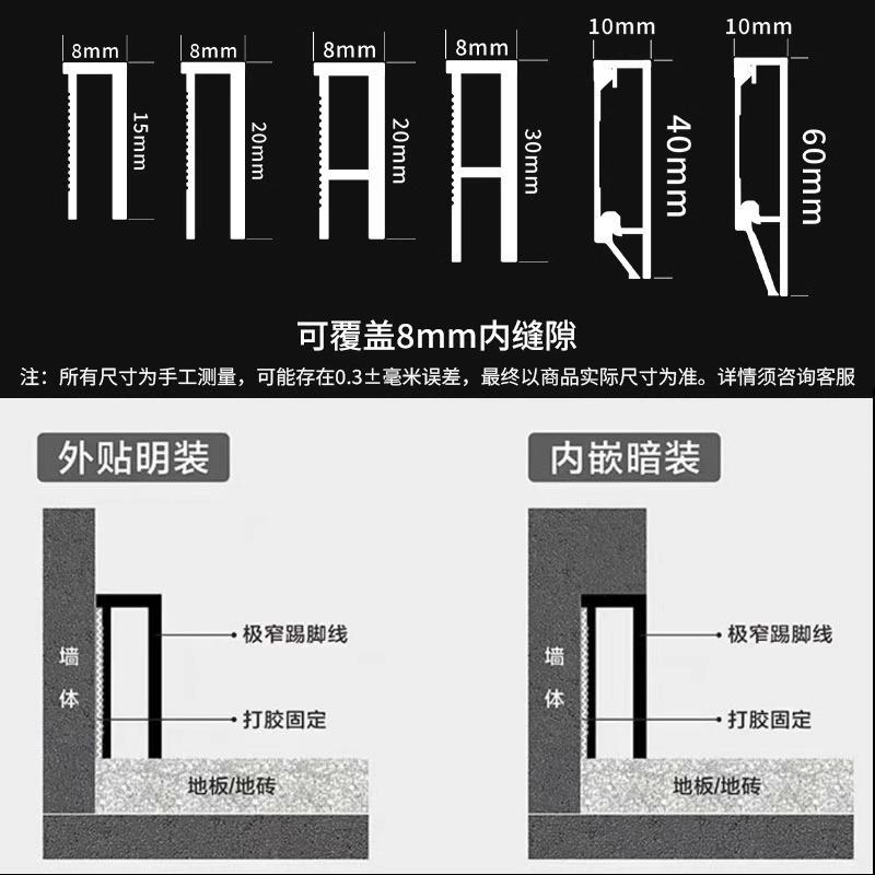 铝合金踢脚线地脚线金属贴脚线条超薄极窄8公分6cm不锈钢4可安装