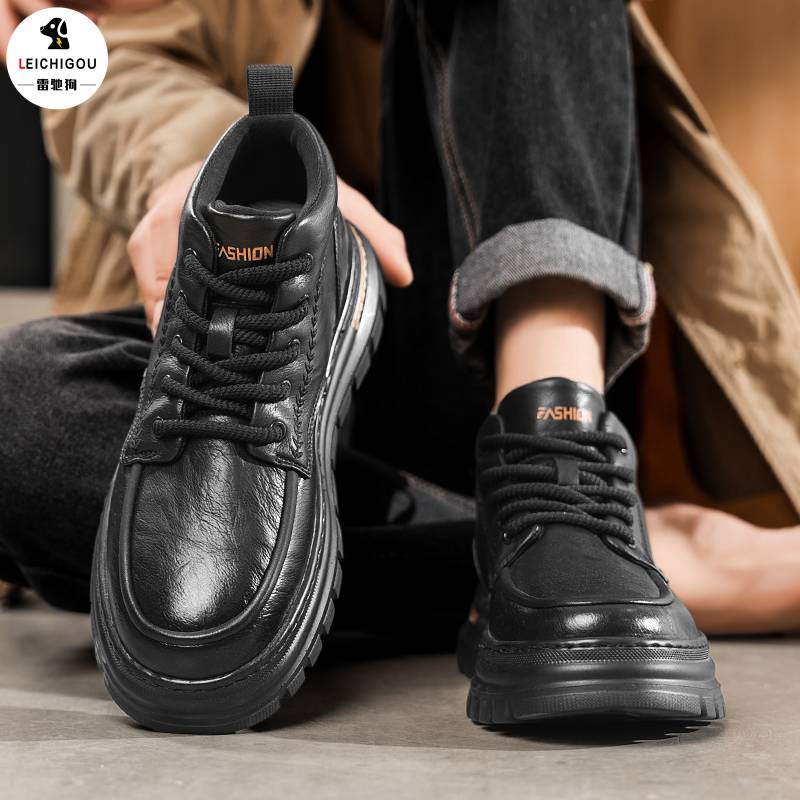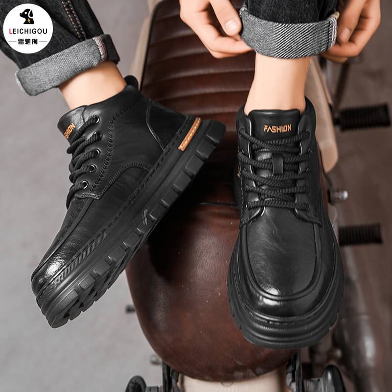 冬季 加绒靴子百搭高帮休闲皮鞋 男鞋 潮流男士 韩版 马丁靴男2025新款