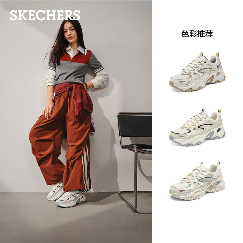 时尚 斯凯奇奶茶熊女款 低帮休闲百搭老爹鞋 情侣鞋 潮流撞色 运动鞋