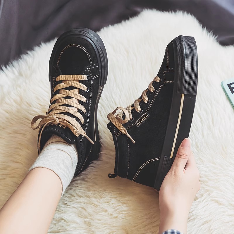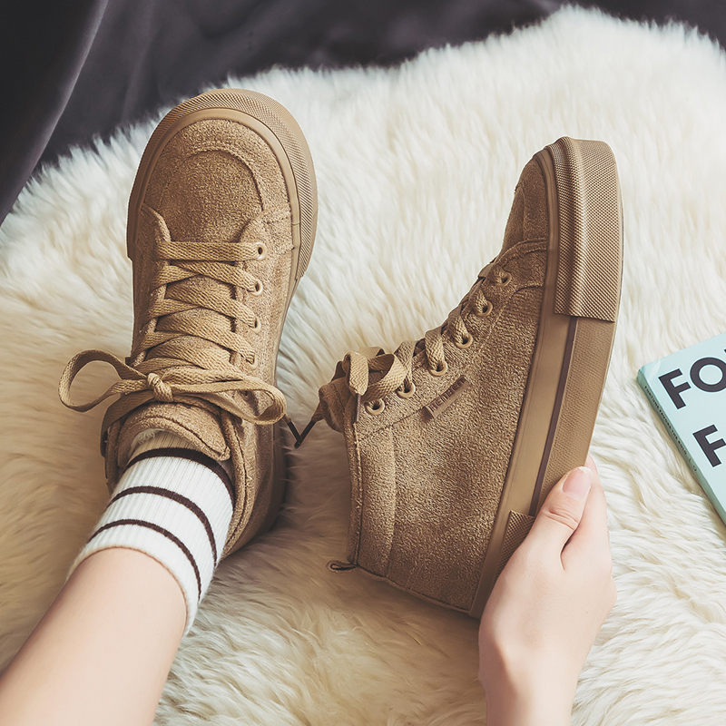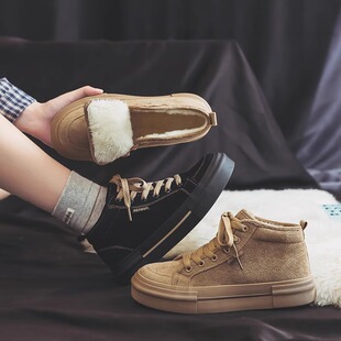 女2025新款 ins潮厚底东北棉鞋 冬季 高帮休闲鞋 韩版 人本加绒帆布鞋