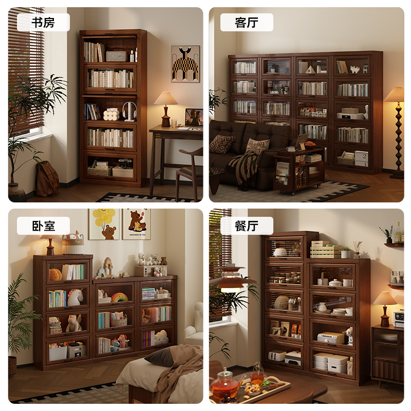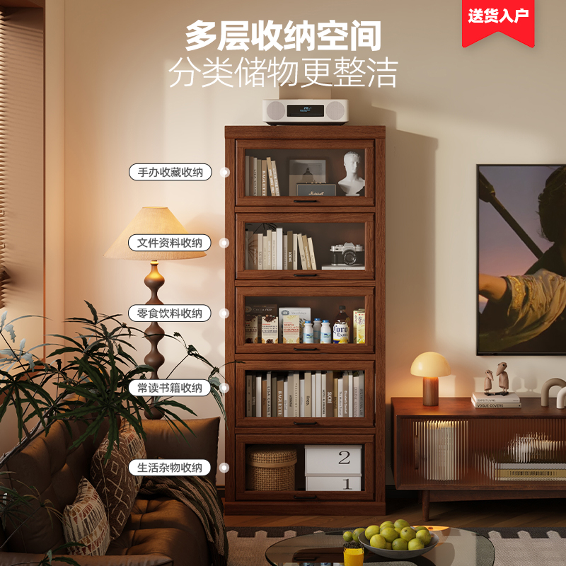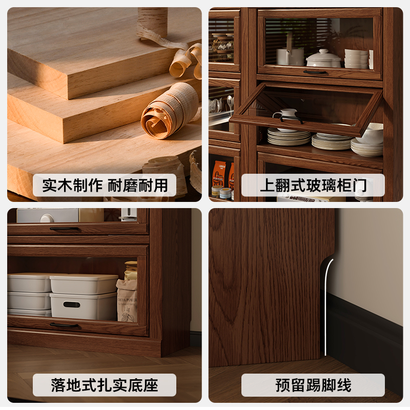 柜子储物柜家用餐边柜靠墙一体置物适合放客厅 玻璃收纳柜子实木