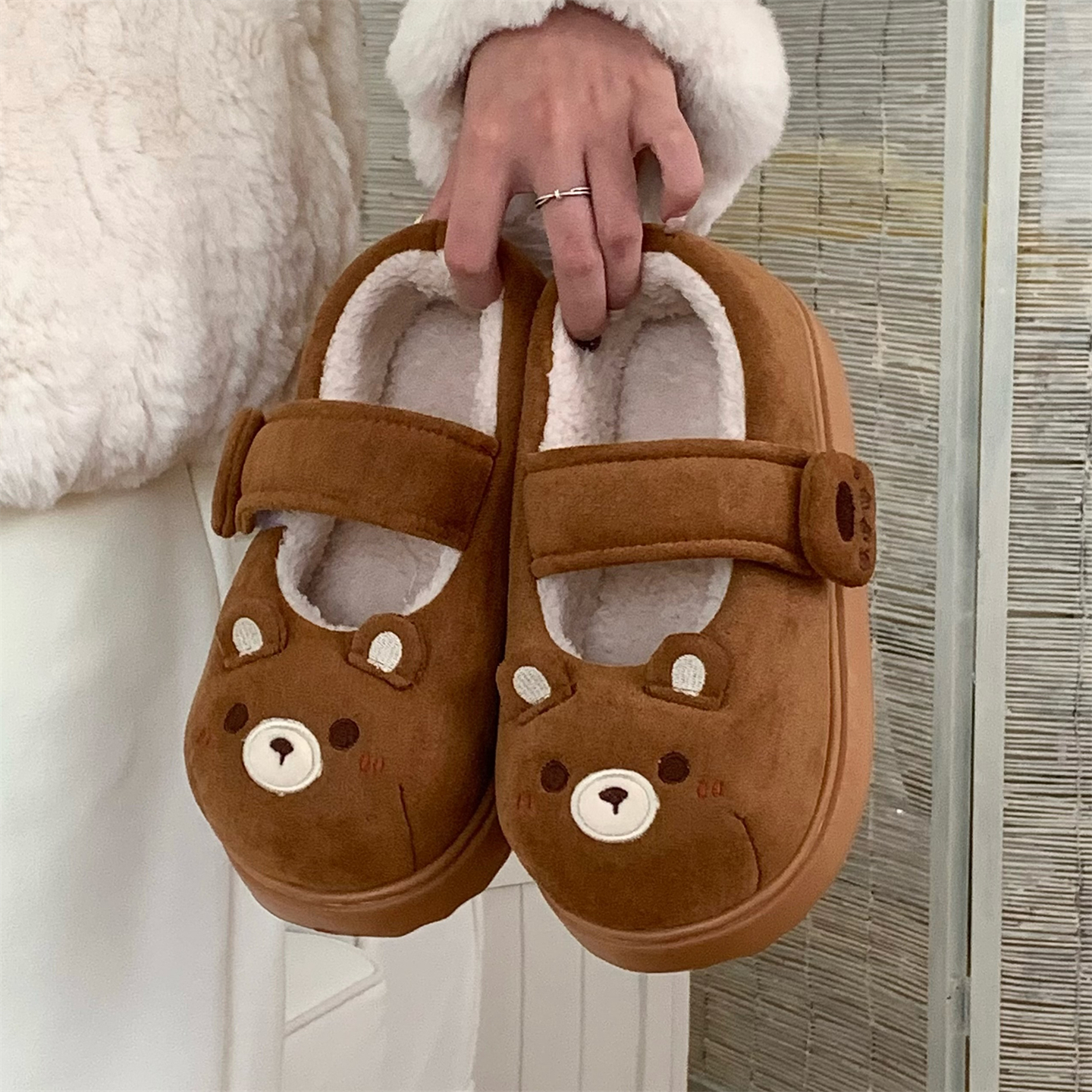 厚底魔术贴豆豆鞋 女冬季 软萌lolita鞋 户外防滑可爱小熊玛丽珍棉鞋