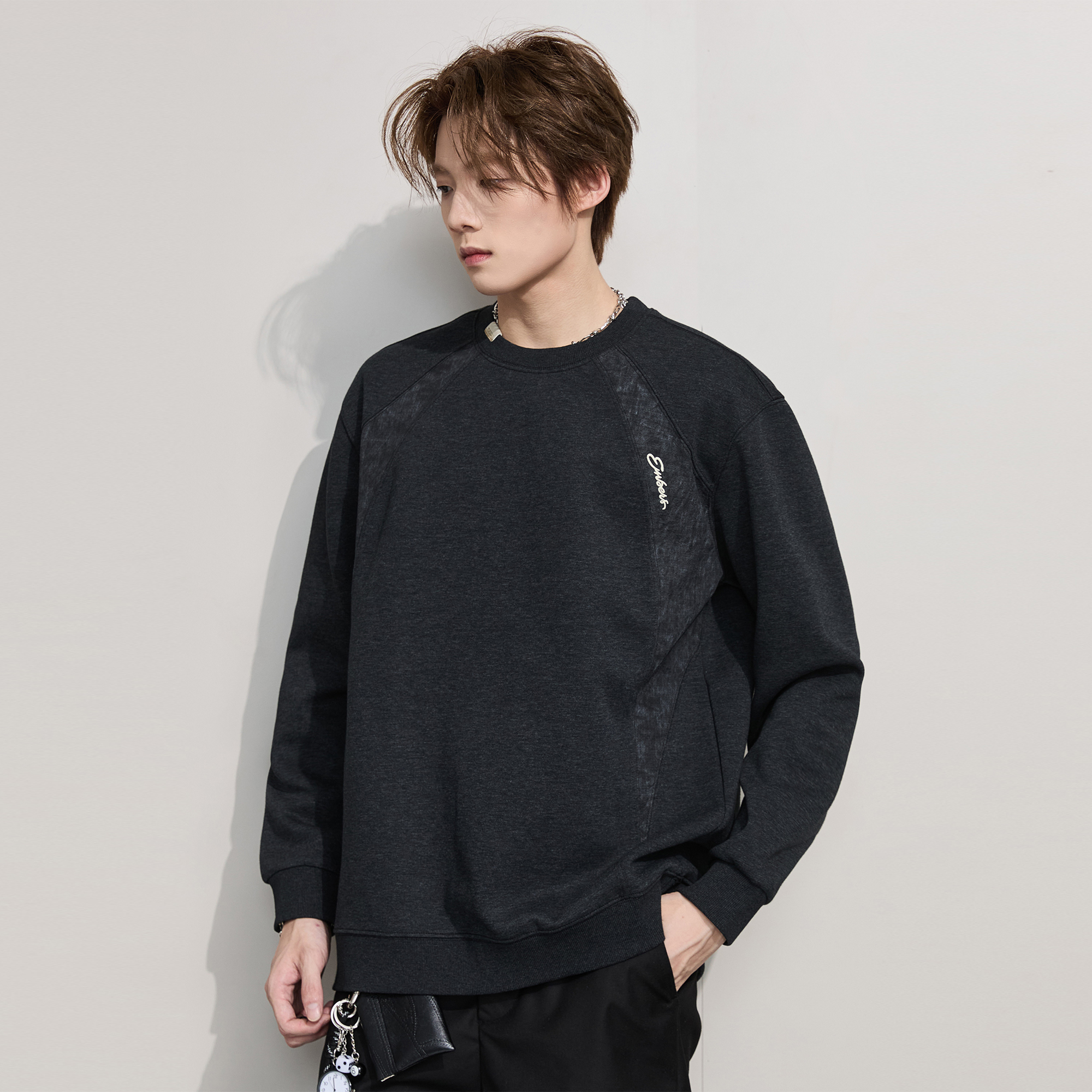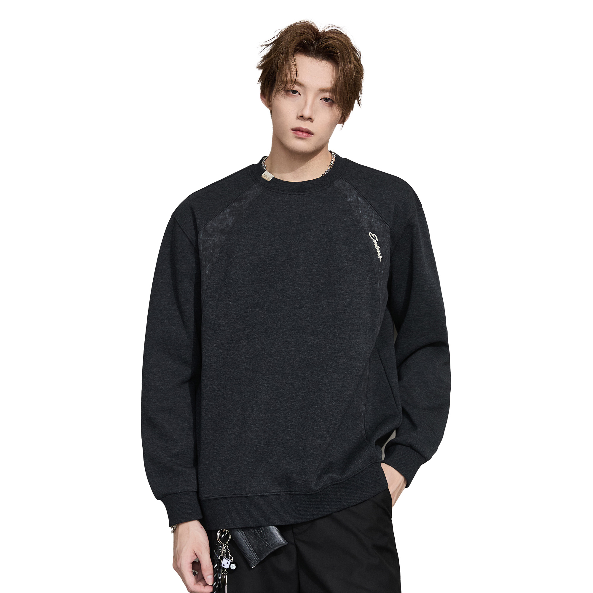 宽松拼接撞色外套 重磅落肩袖 ALLIN 情侣风字母刺绣卫衣男生秋冬季