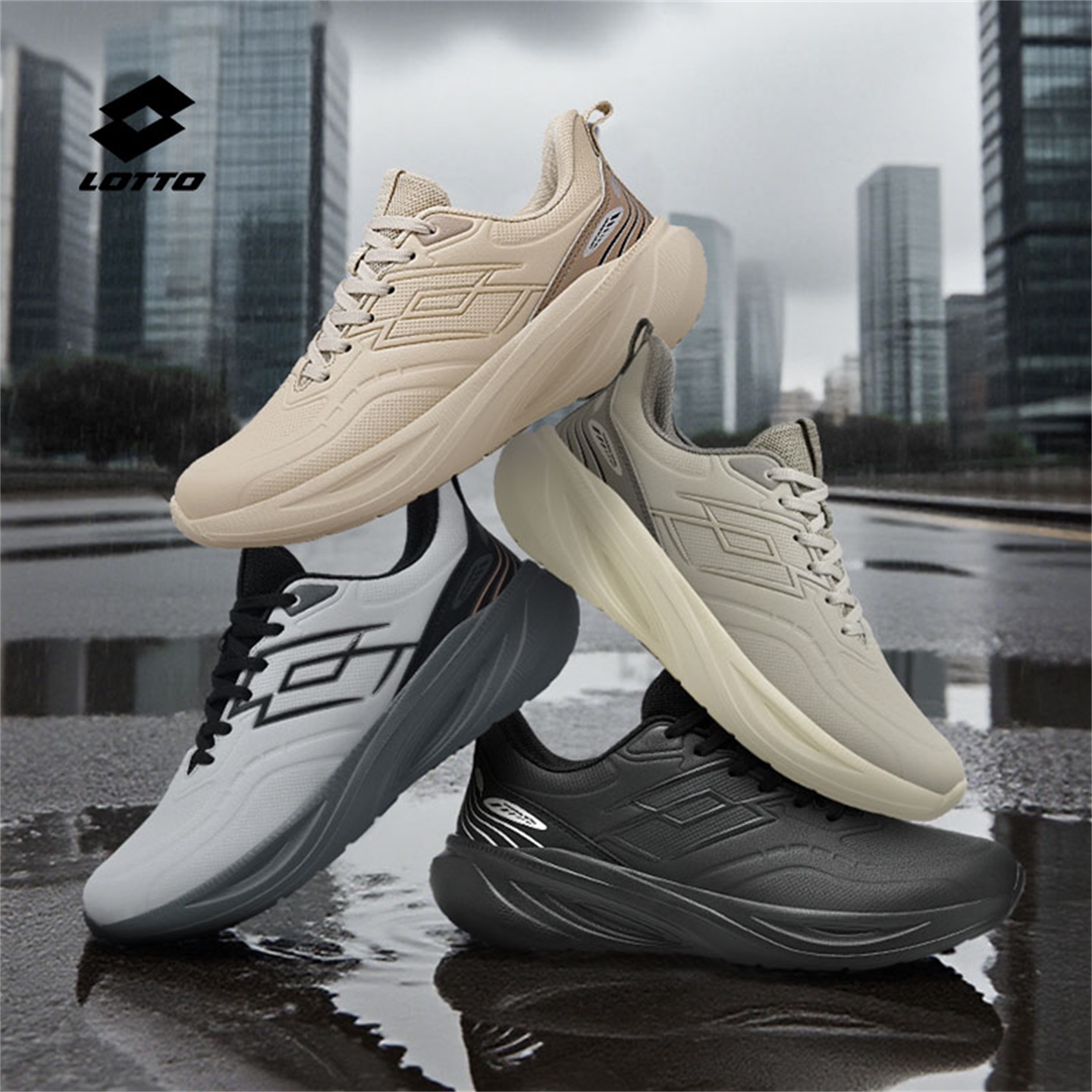男款 乐途男鞋 女厚底减震运动鞋 轻便舒适跑步鞋 春秋防水皮面休闲鞋