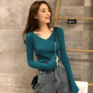 毛衣洋气内搭打底衫 气质V领长袖 2025修身 女冬季 上衣1010c 针织衫