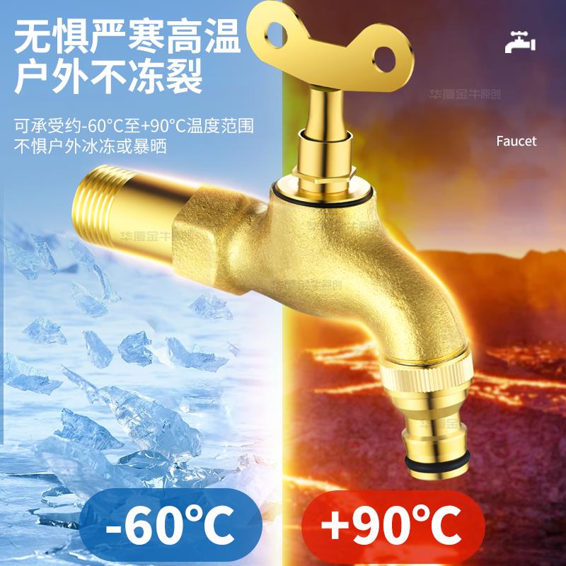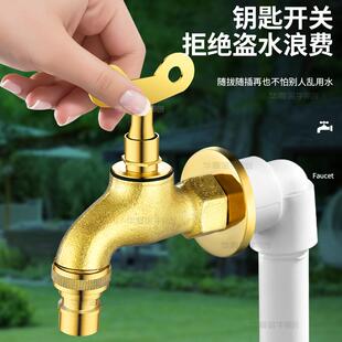 全铜加厚带锁水龙头室户外防盗偷加长水嘴洗衣机钥匙单冷家用4分