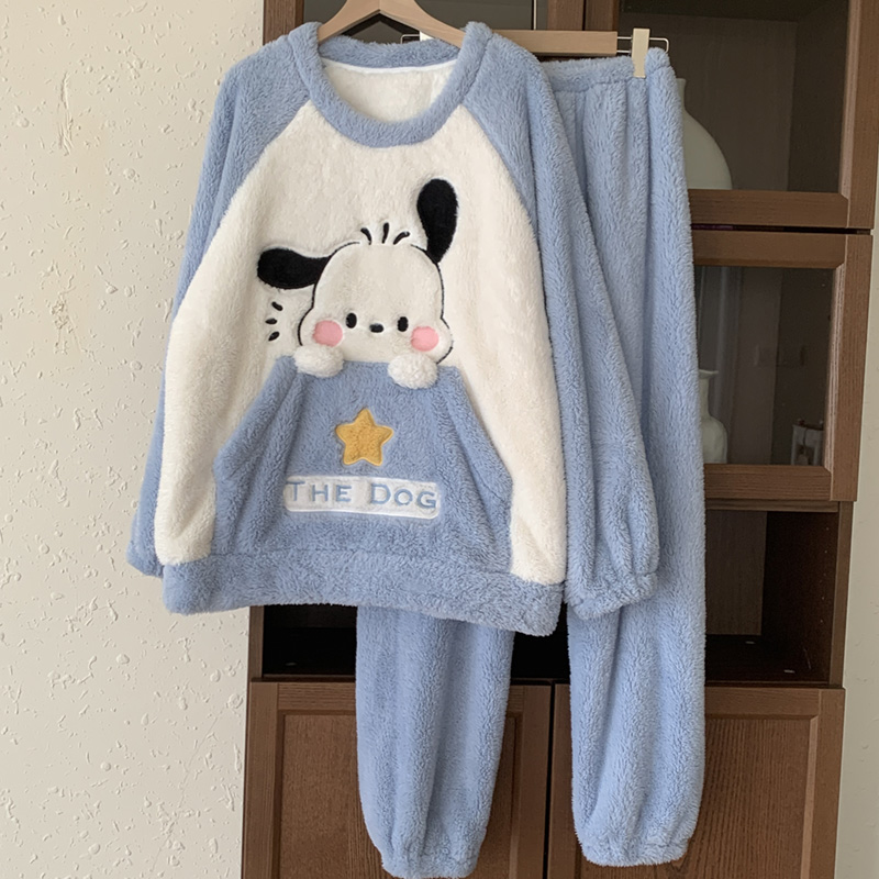 珊瑚绒睡衣腊肠狗情侣家居服套装 造福鸟冬季 烈儿炸烈双11