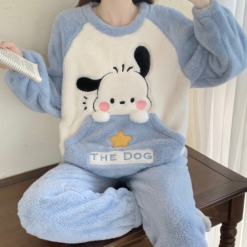 玛丽猫联名甜美女士家居服套装 毛绒保暖新款 果壳睡衣冬季 Gukoo