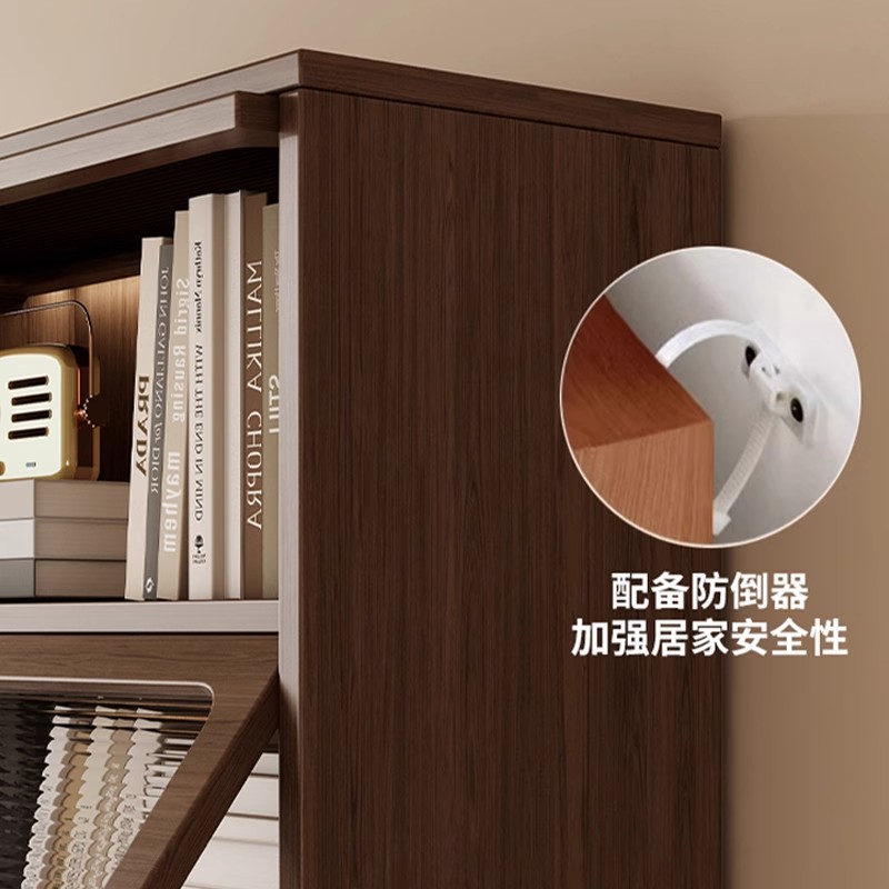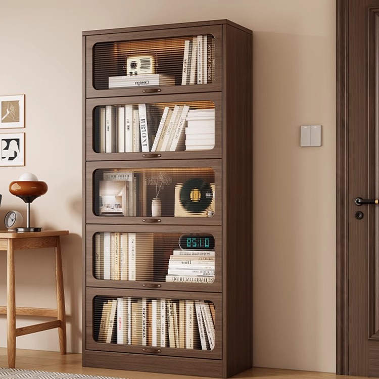 实木书柜家用客厅展示柜可定制柜子中古风带玻璃门单个书柜储物柜