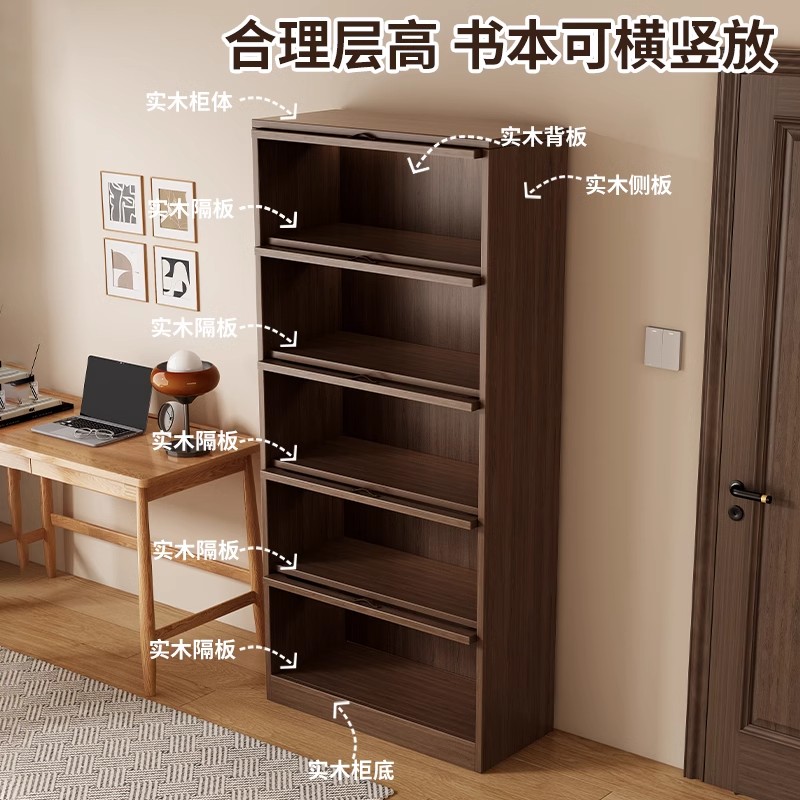 晨物北美黑胡桃木组合书架小户型客厅书房单个书柜靠墙落地置物架