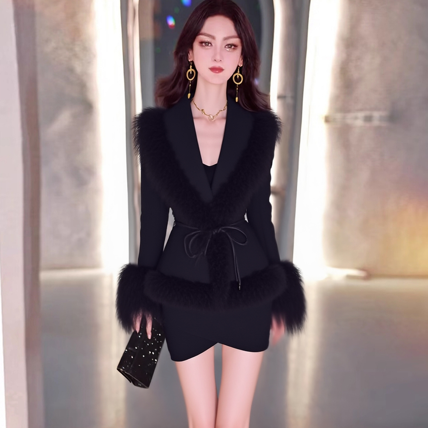 预售COCOBELLA静奢风珠片花纱毛呢外套短款 WL507 廓形小香风西装