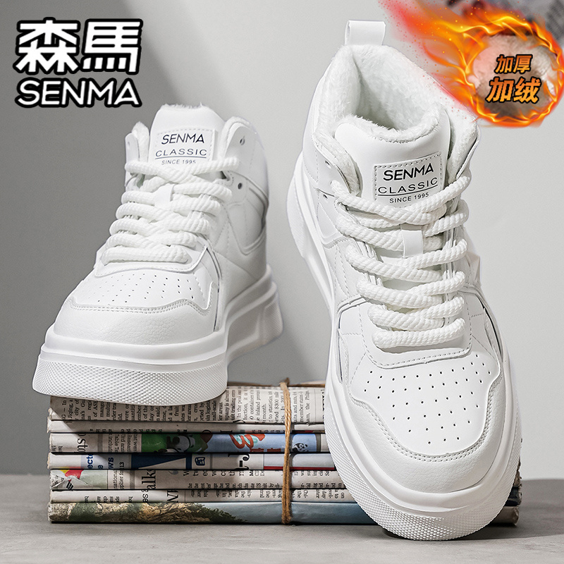 男鞋 皮面百搭休闲鞋 秋冬新款 子黑白厚底运动鞋 防水鞋 鸿星尔克板鞋