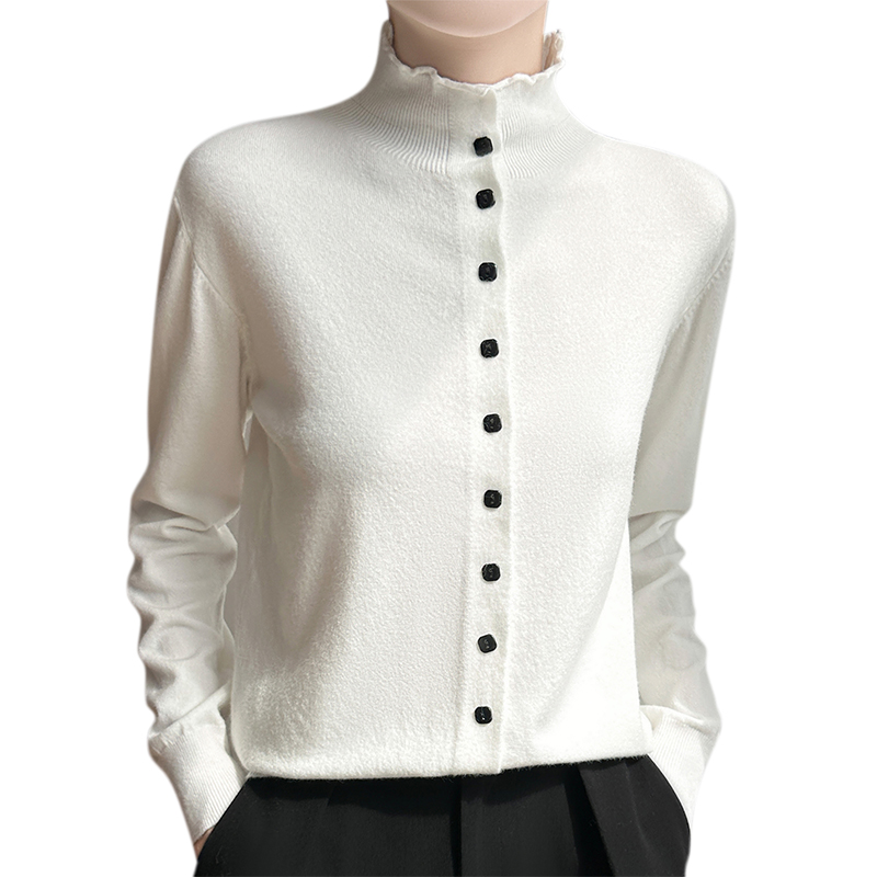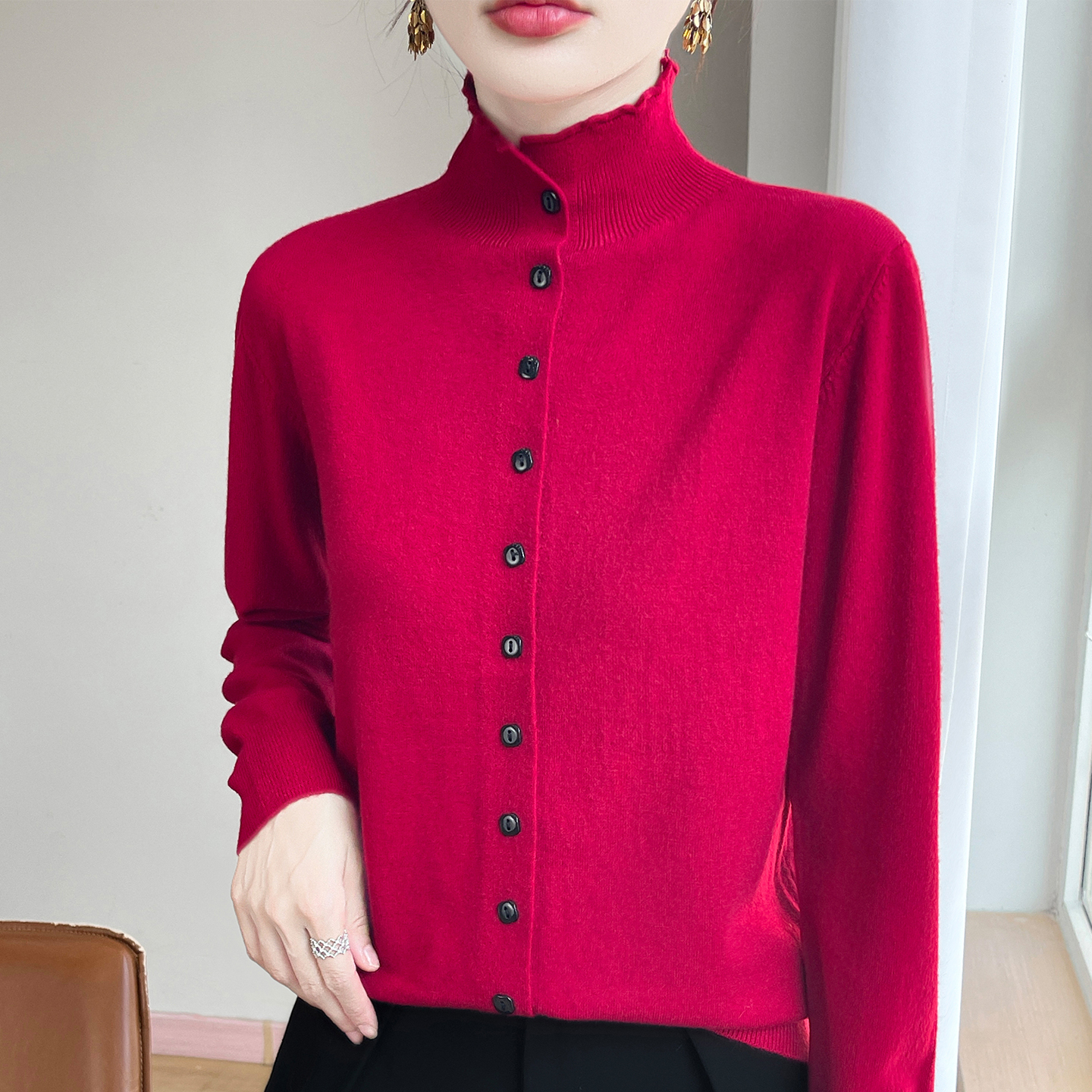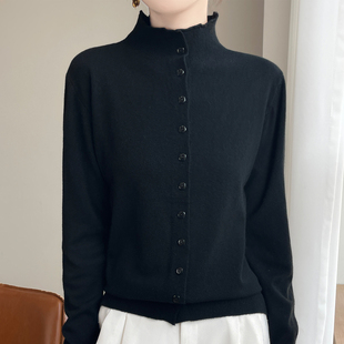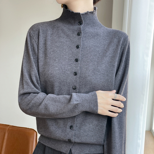 法式 女减龄气质外穿毛衣外套高级感小高领上衣 复古花边领针织开衫