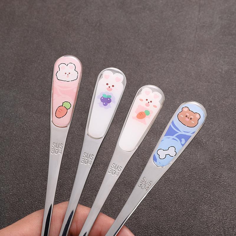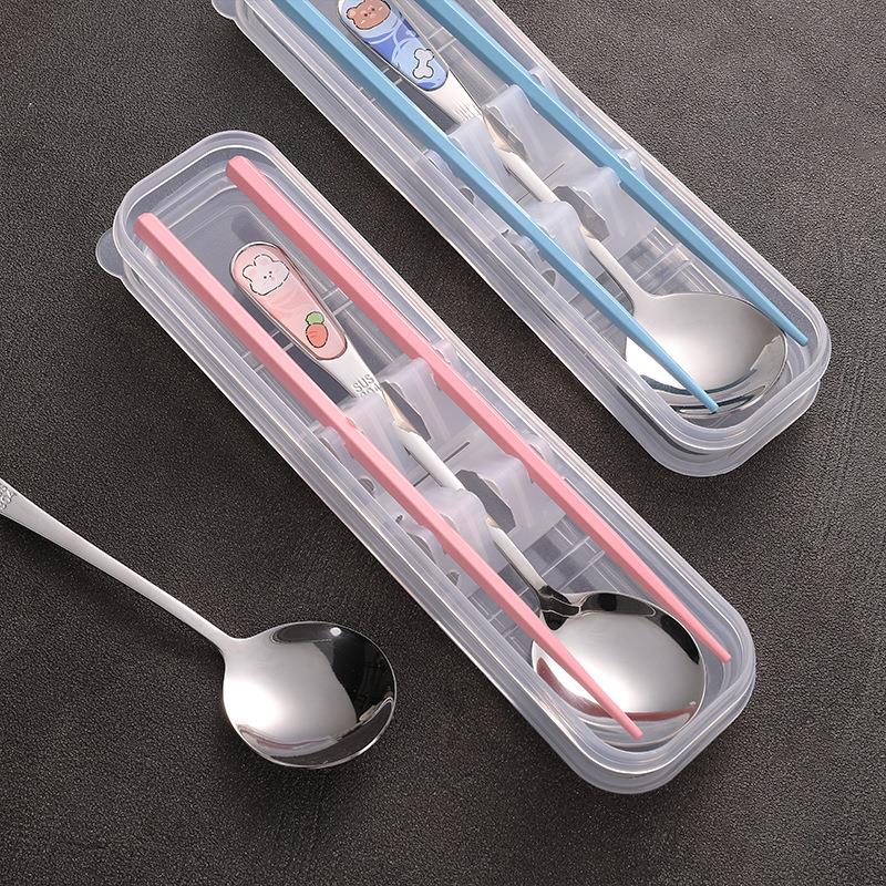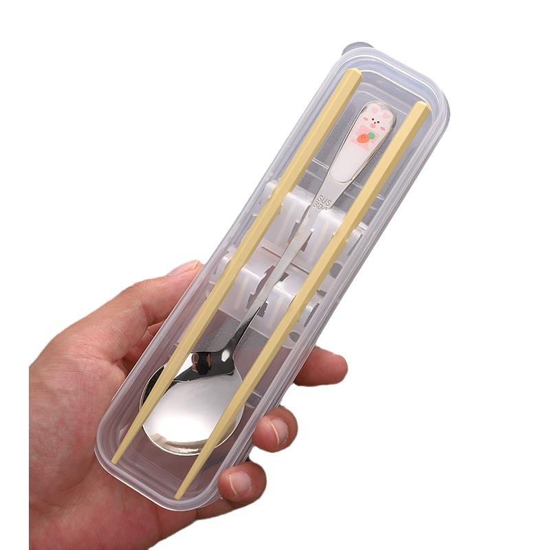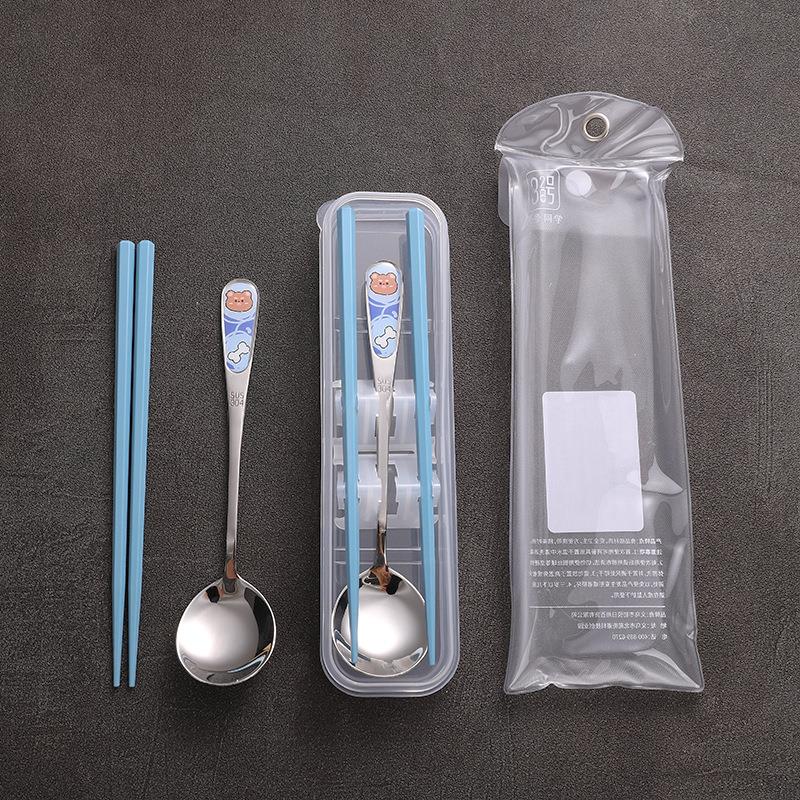 卡通可爱餐具套装 学生午餐露营便携不锈钢勺合金筷餐具两件套