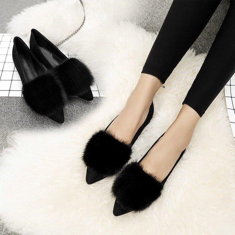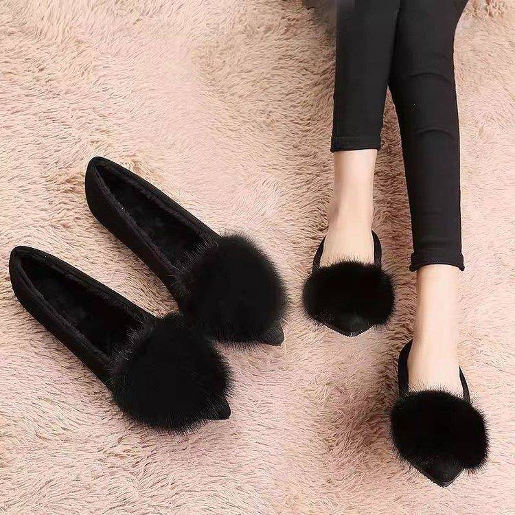 女外穿加绒保暖平底鞋 法式 温柔风毛毛鞋 女2025年秋冬新款 尖头单鞋
