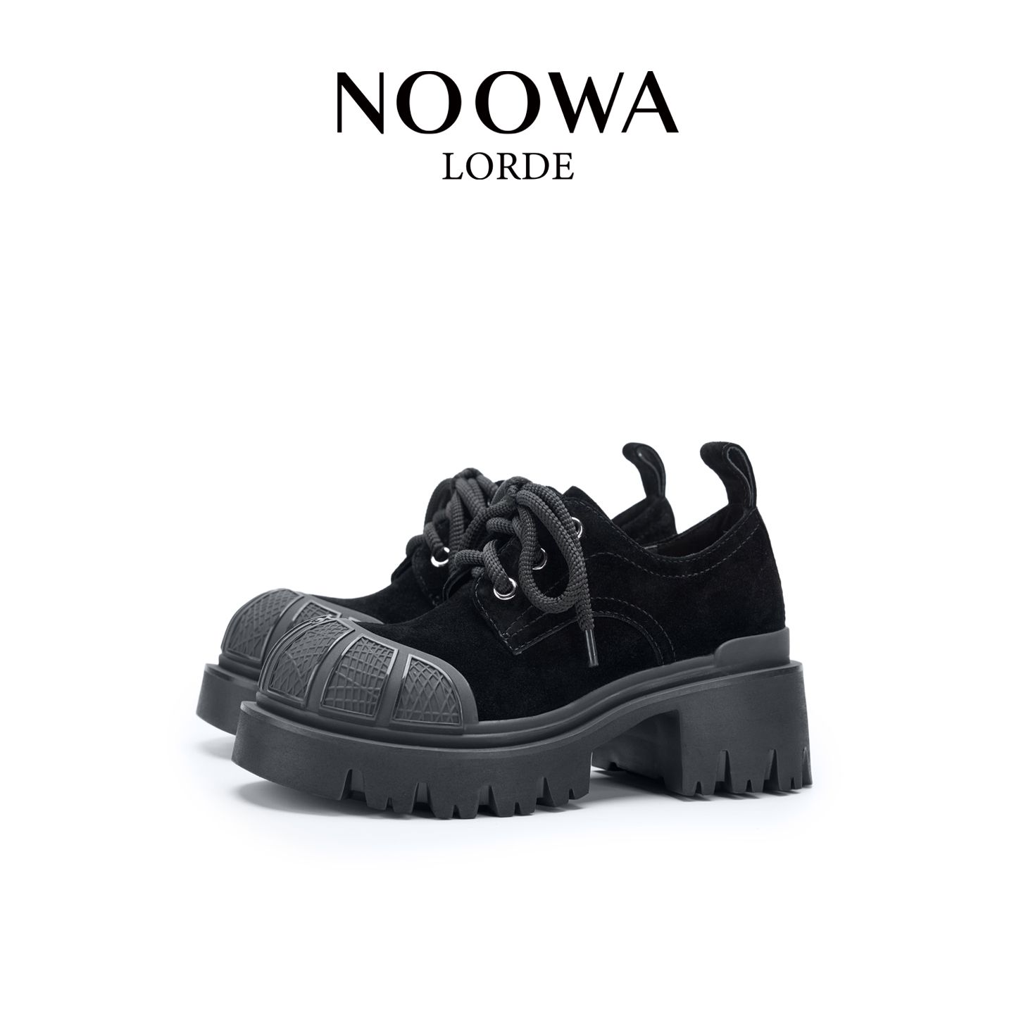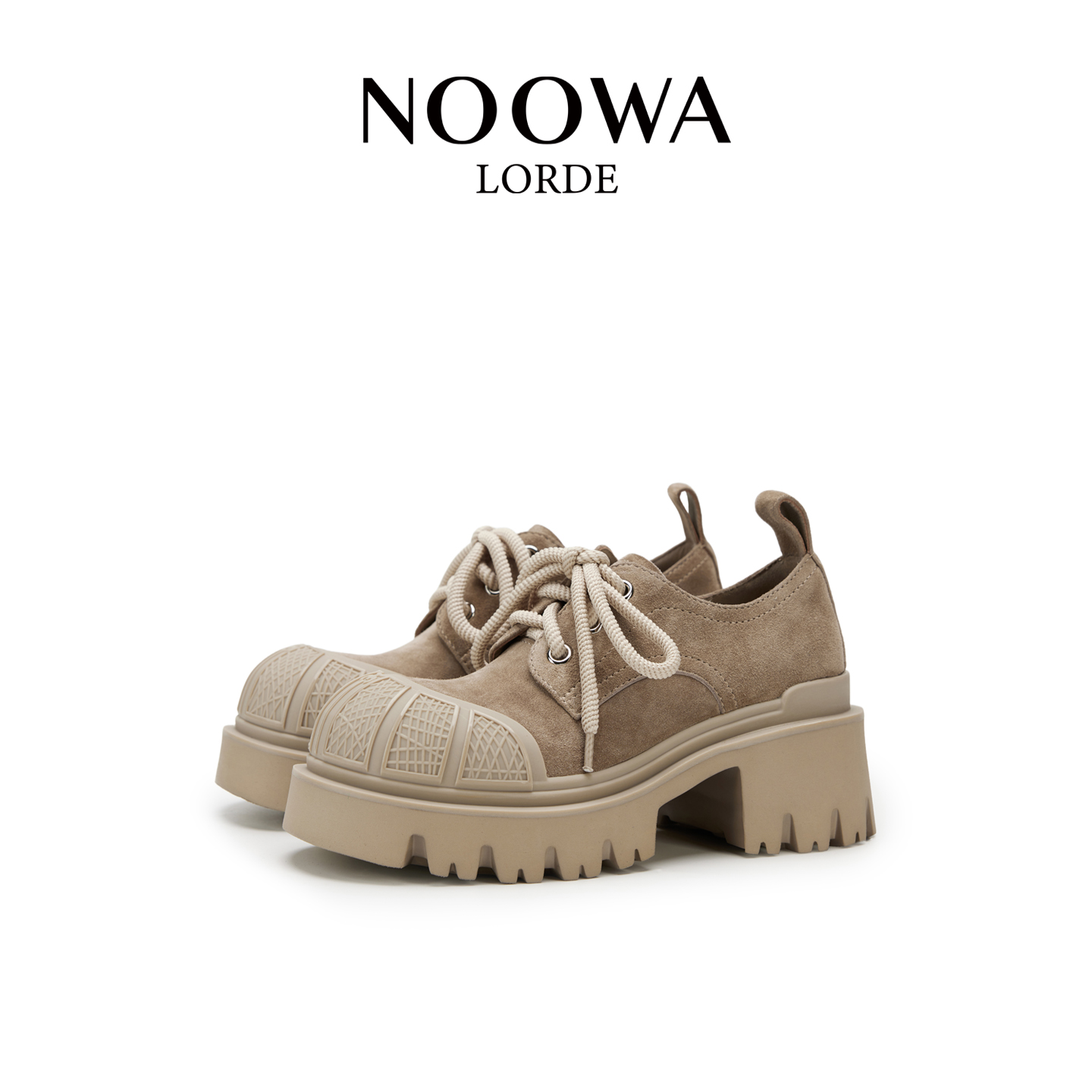 女鞋 真皮增高百搭系带单鞋 2025秋季 时尚 款 NOOWA大头粗跟乐福鞋