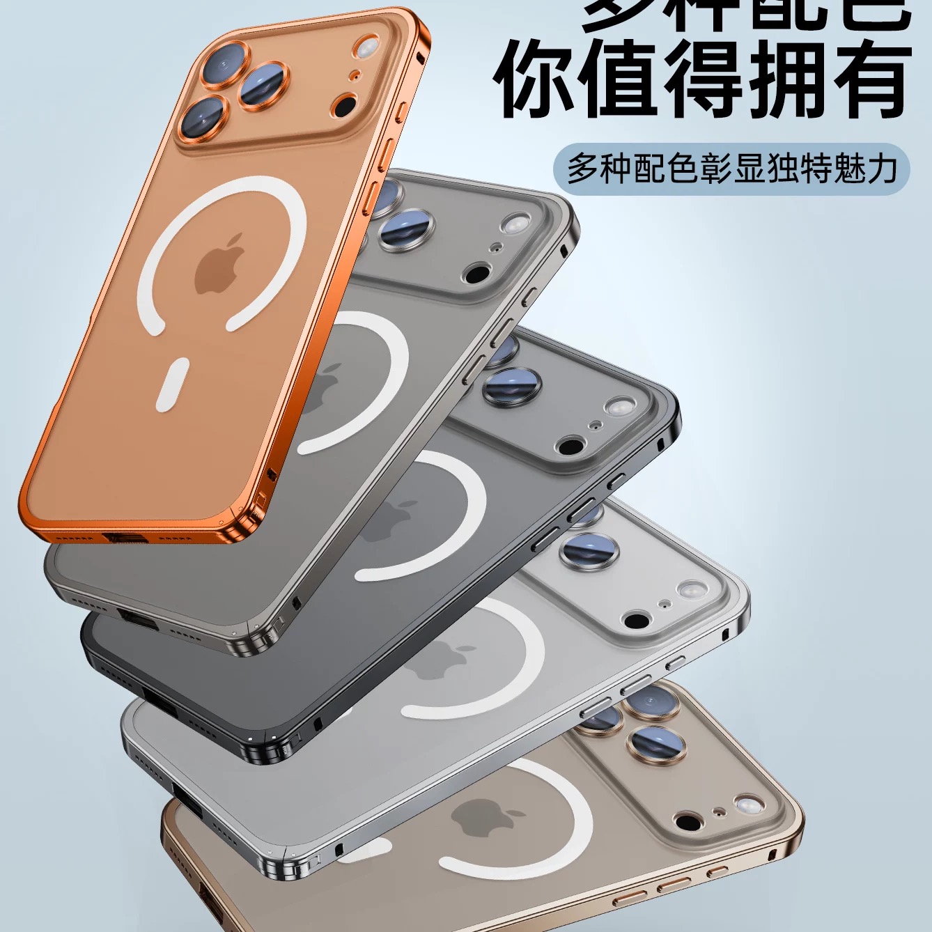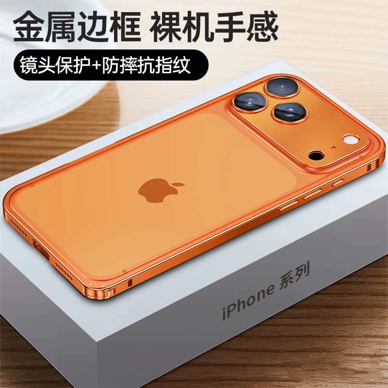 适用苹果17promax手机壳新款 钛金属裸机iPhone17保护壳超薄15plus边框壳ip14钛合金15promax带金属镜头膜13