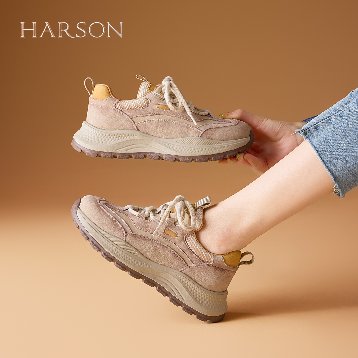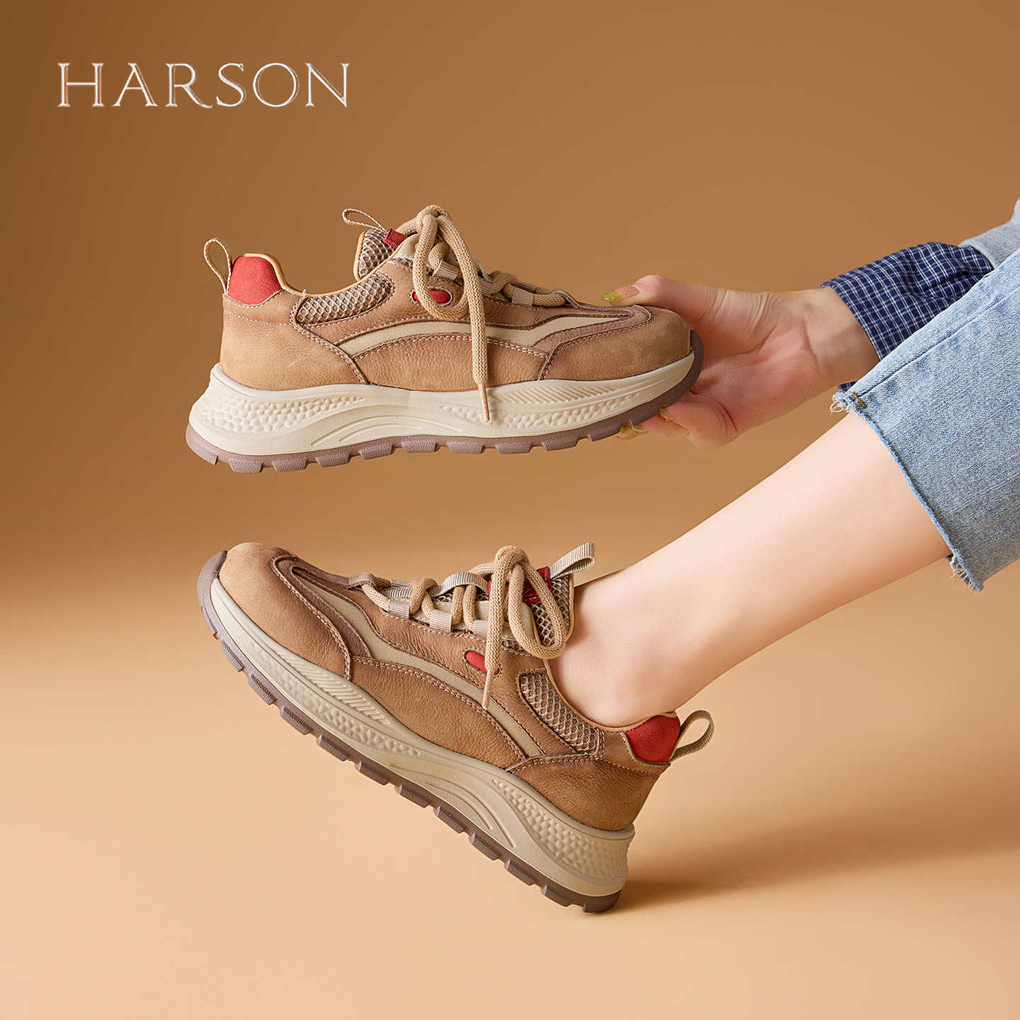百搭舒适老爹鞋 子2025秋冬时尚 女鞋 哈森增高5cm复古休闲运动鞋