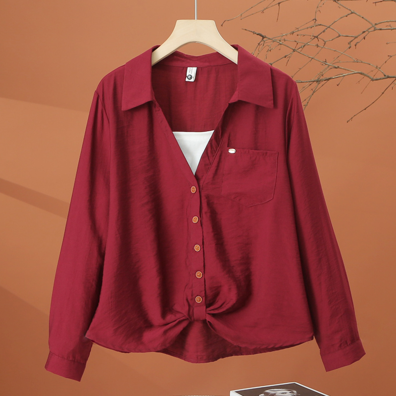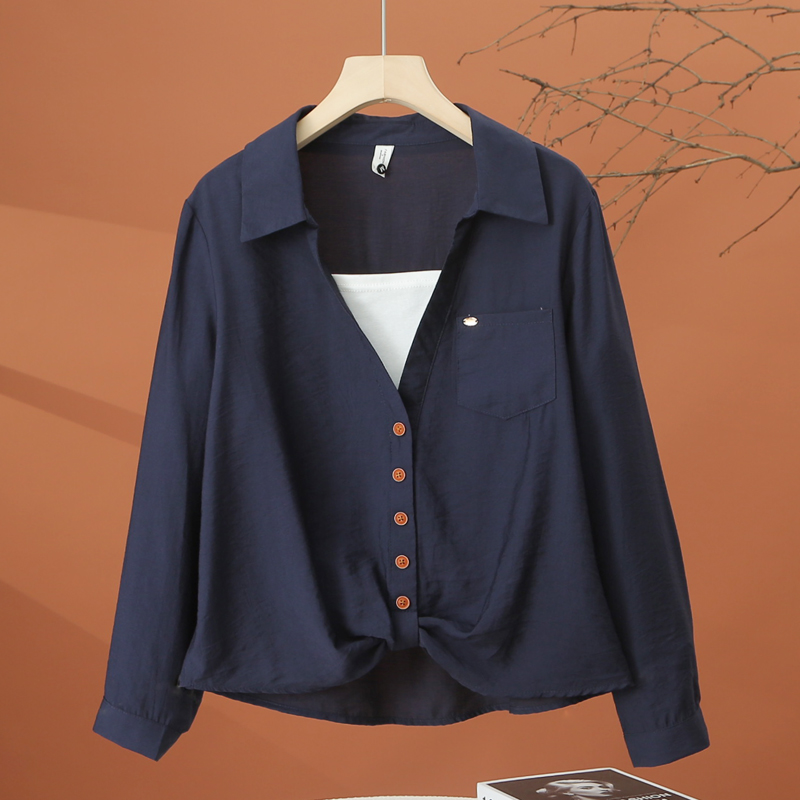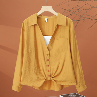衬衫 衬衣时尚 女2025秋季 女装 洋气下摆打结女士上衣 新款 假两件长袖