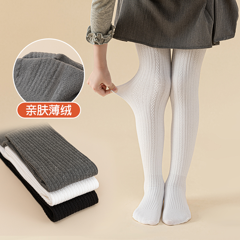 儿童打底裤 袜女孩白色防滑舞蹈袜 秋冬薄绒宝宝加绒中厚一体绒连裤
