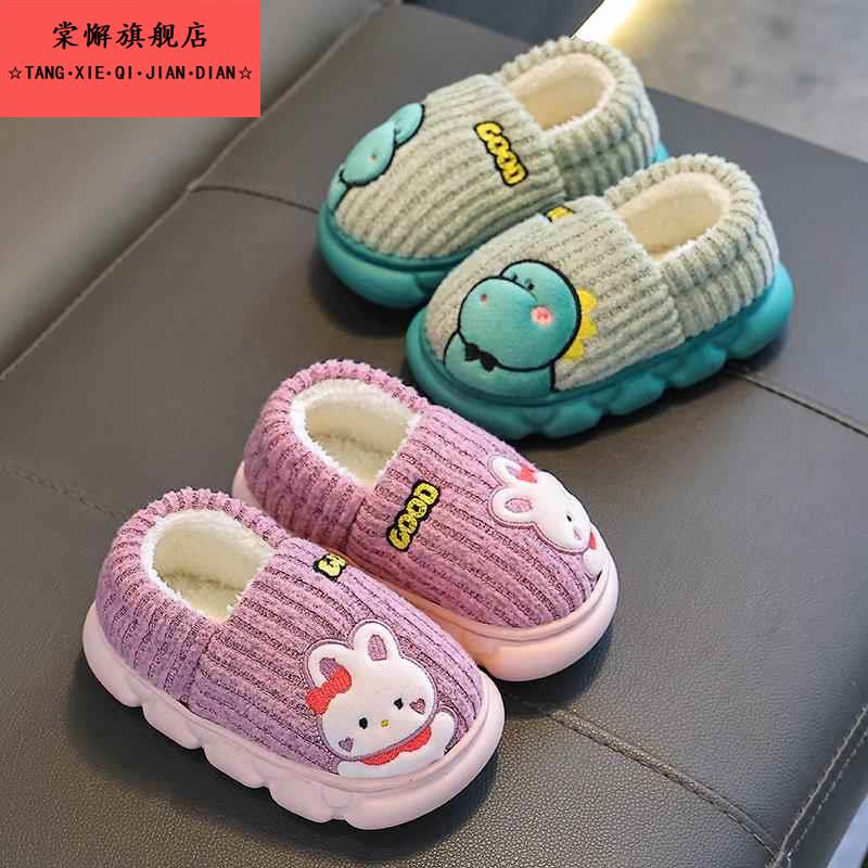 儿童棉拖鞋 冬 男童卡通可爱小熊防滑室内居家软底亲子宝宝包跟棉鞋