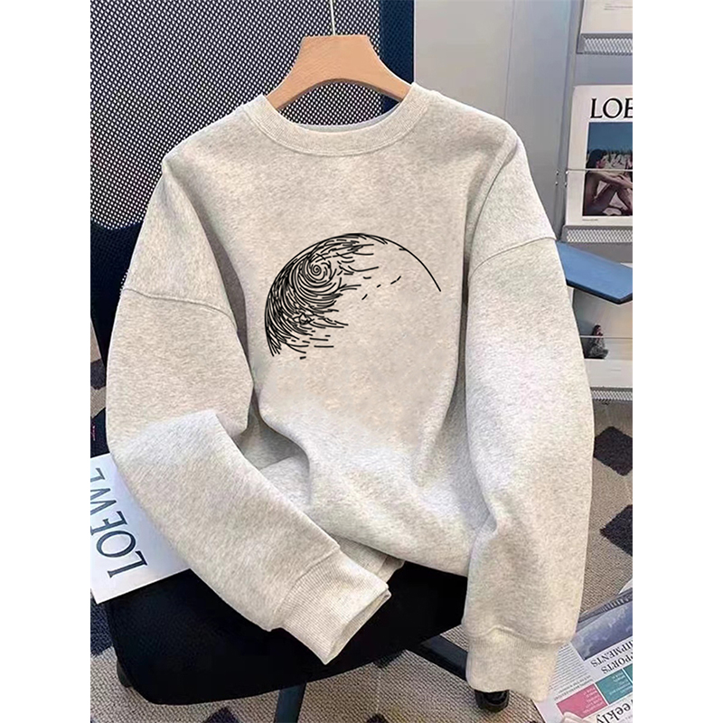 2025新款 宽松休闲ins圆领上衣潮牌加绒加厚春秋冬 卫衣女纯棉韩版