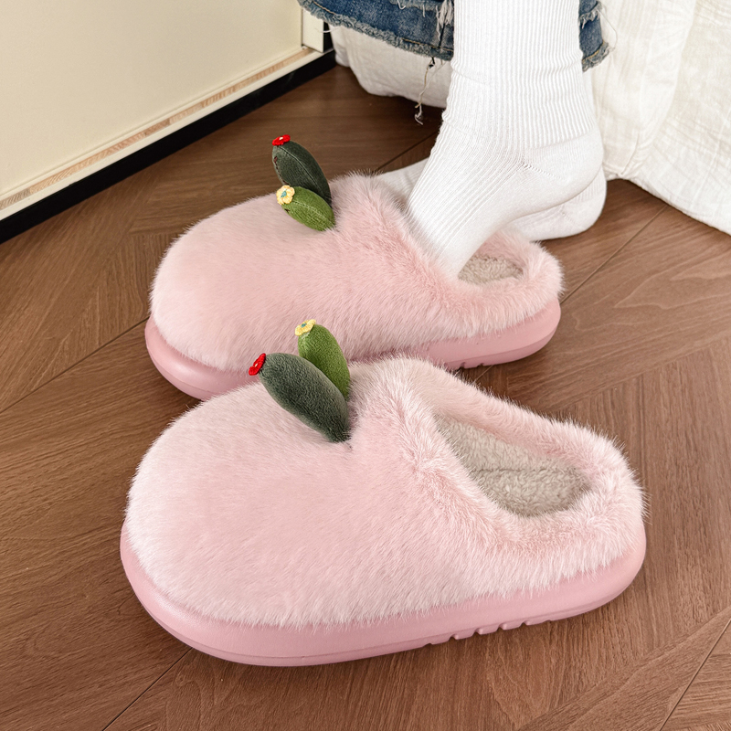 男士 保暖防滑家居室内加绒毛毛棉鞋 女士2025秋冬新款 踩屎感棉拖鞋
