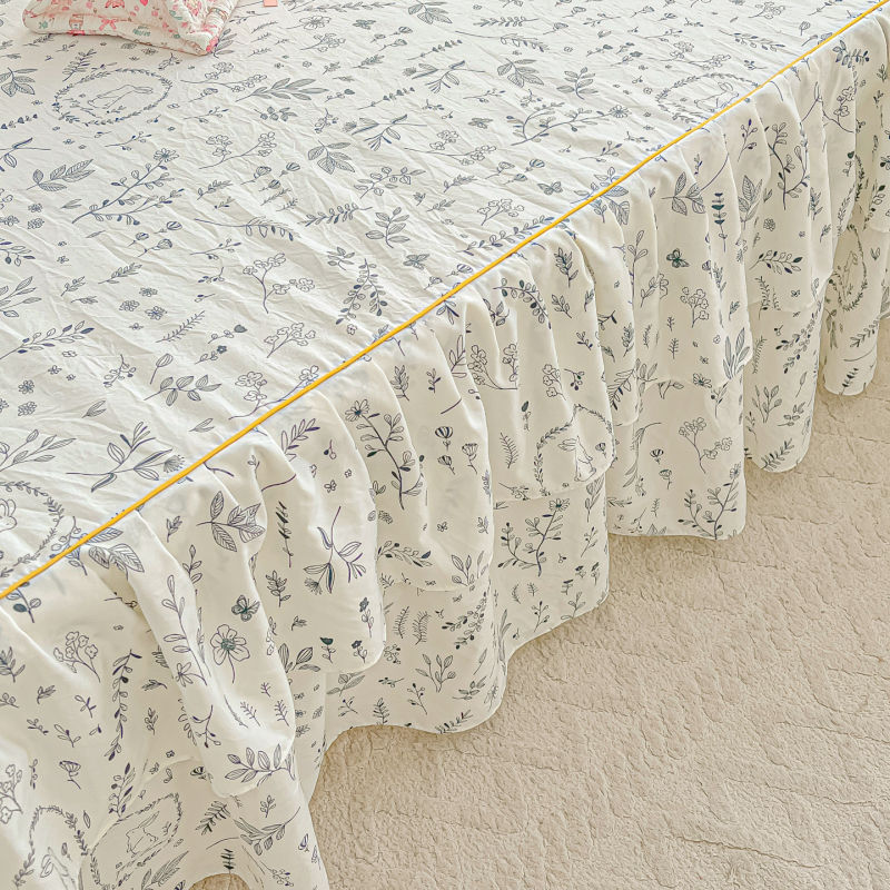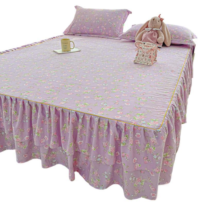 全棉床裙夹棉床笠单件纯棉床盖防尘床单床垫防滑三件套四季 通用