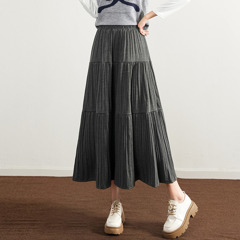 阔色深灰色波点毛衣裙a字裙半身裙25秋冬季 女长裙子半裙 穿搭新款