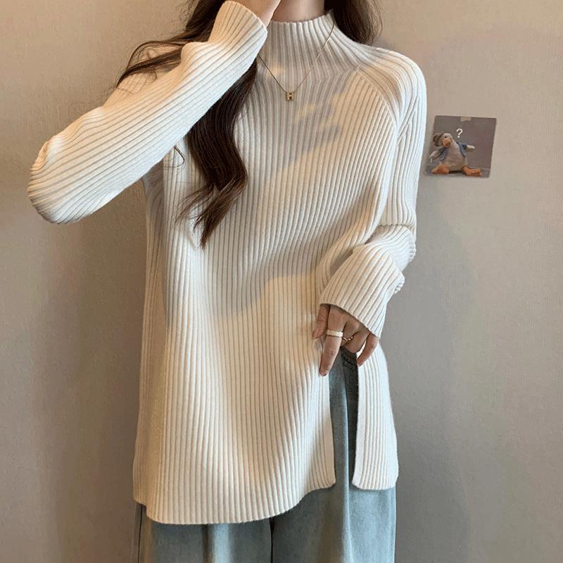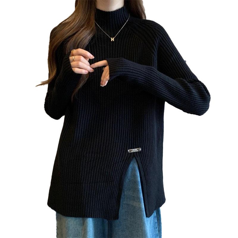 中长款 半高领开叉坑条洋气内搭针织打1009h 毛衣遮屁股女秋冬新款