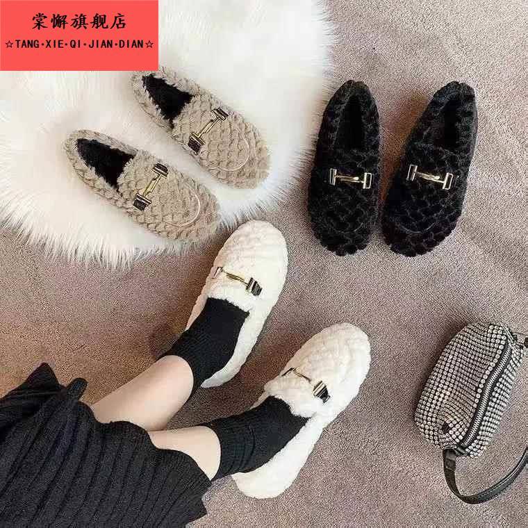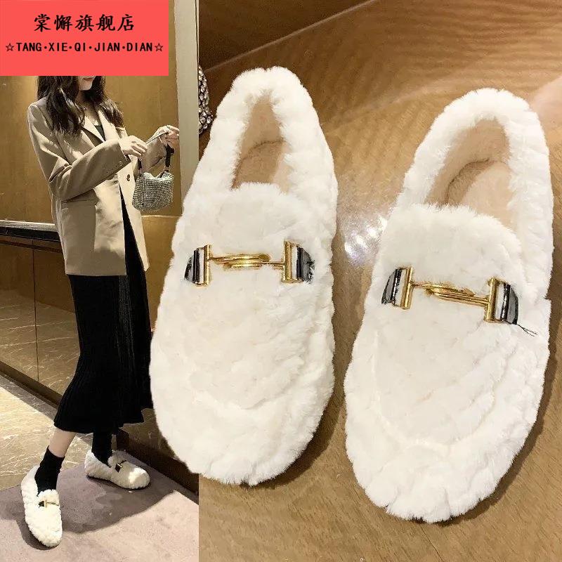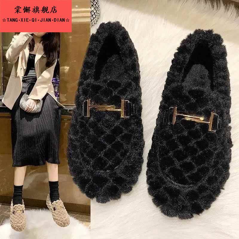 软底毛毛月子家居豆豆鞋 女士室内平底保暖包跟棉鞋 保暖棉拖鞋 冬季