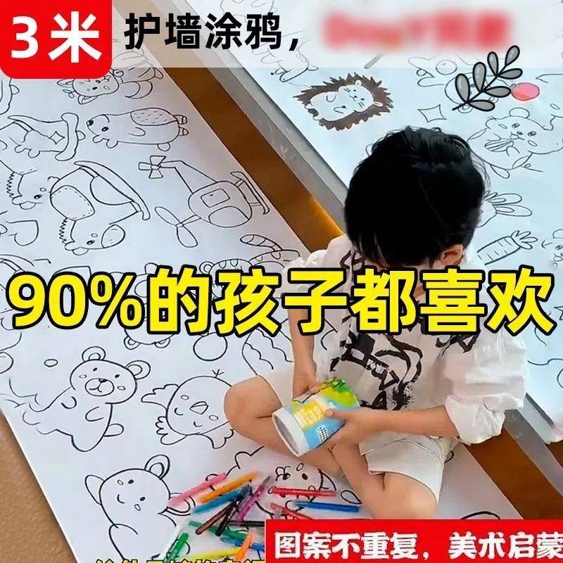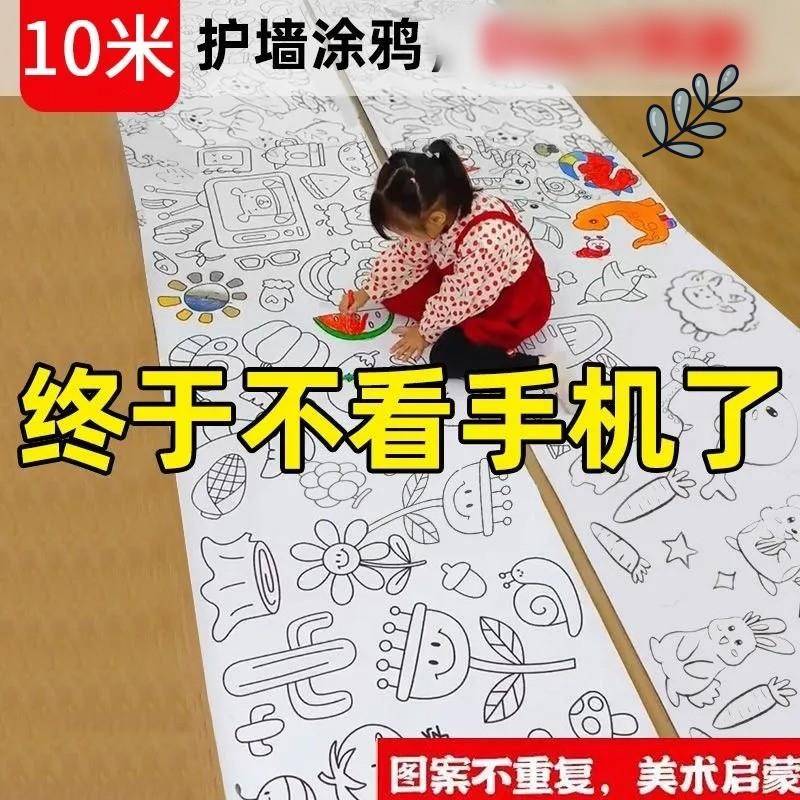 儿童填色绘画长卷10米超长地板涂鸦画纸公主宝宝可以铺在地上 画
