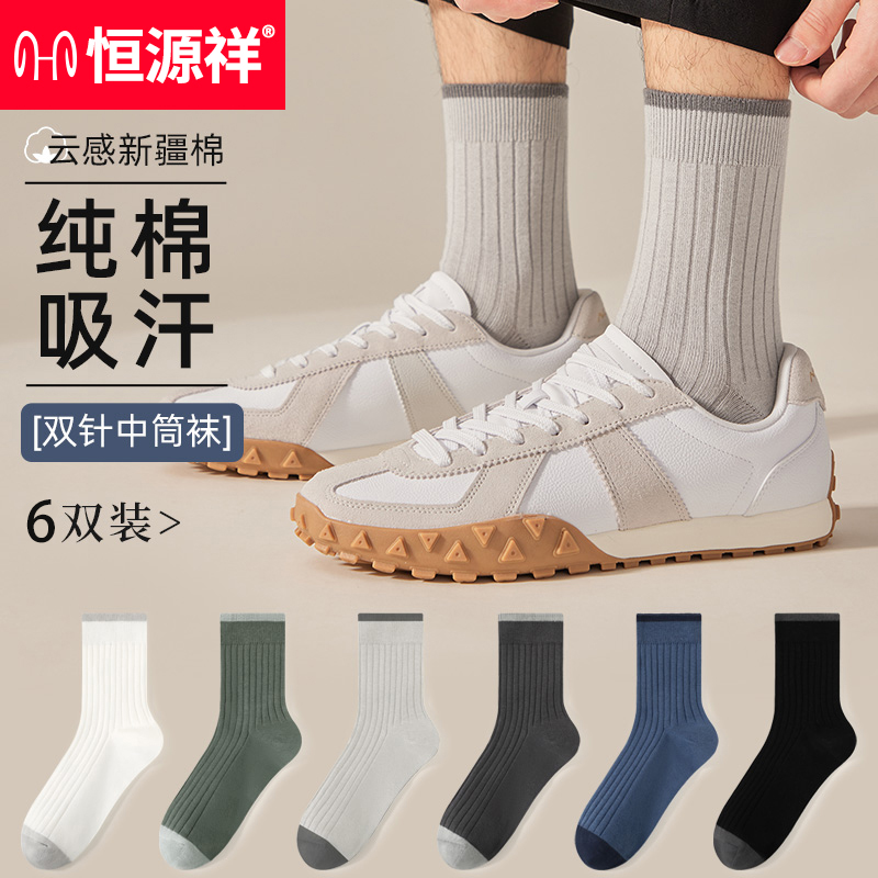 特大夏季 纯棉短筒运动袜防臭透气48码 中筒袜 袜子男士 恒源祥加大码