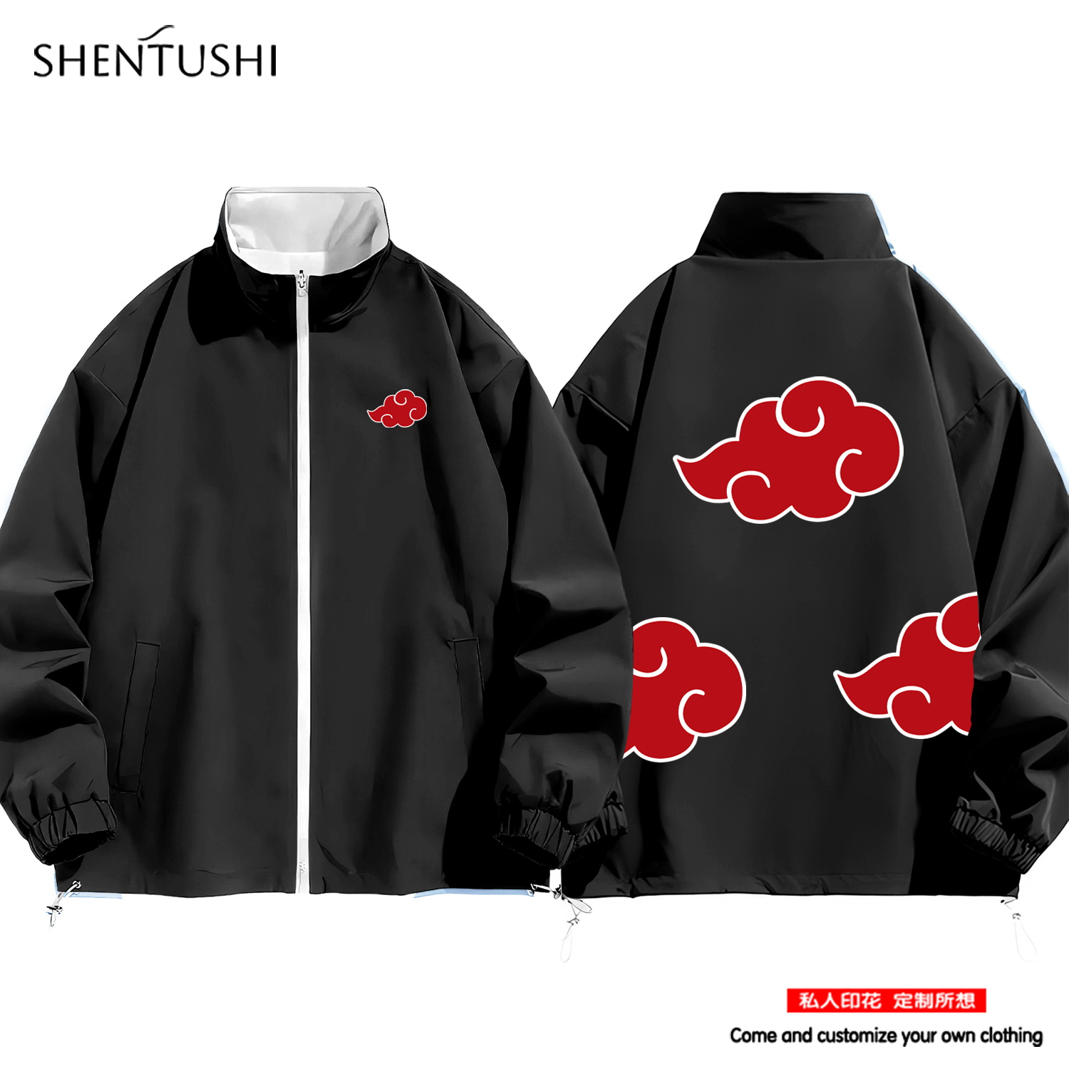 火影忍者晓组织同款 冲锋衣服夹克外套 cos祥云两面穿男女学生秋季
