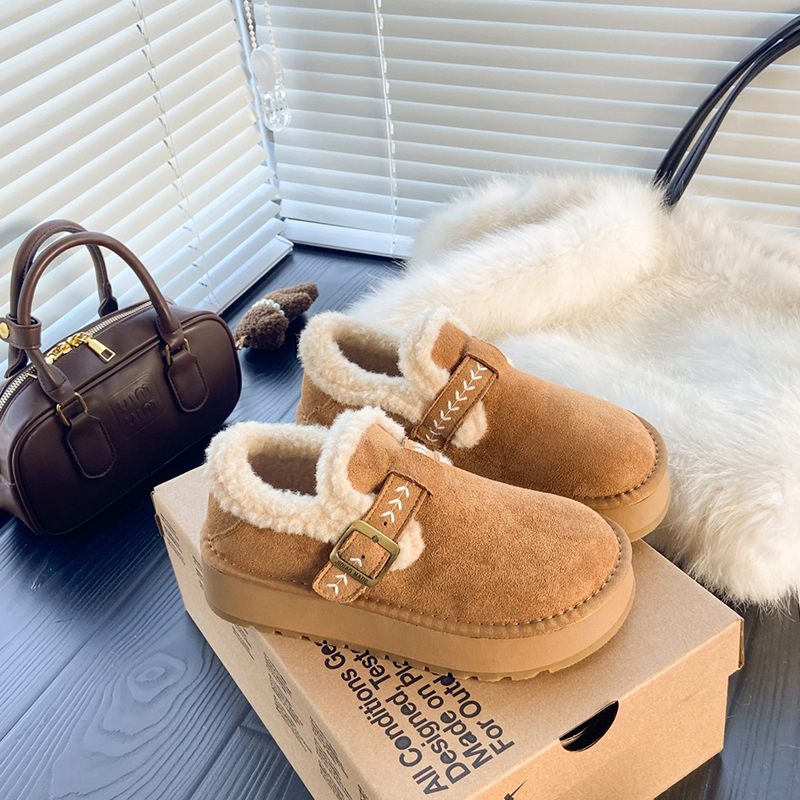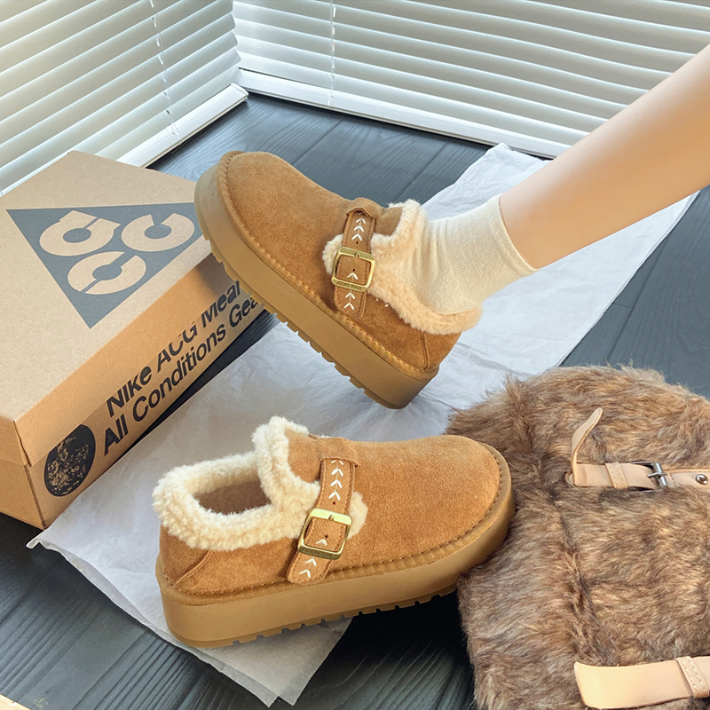 皮毛一体加绒加厚毛毛勃肯雪地靴女款 冬季 子2025新款 保暖厚底棉鞋
