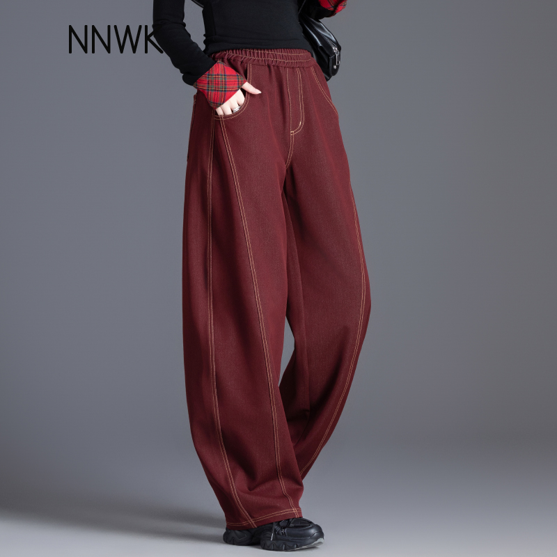 秋冬季 垂感西装 裤 酒红色裤 镰刀裤 休闲裤 松紧腰香蕉裤 子女2025新款