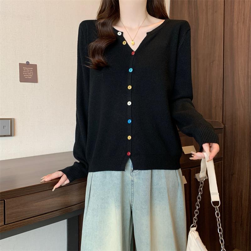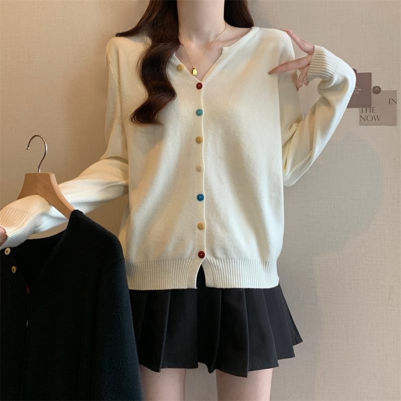 1008n 女秋冬外穿减龄百搭长袖 秋冬季 胖mm宽松遮肉显瘦v领针织开衫