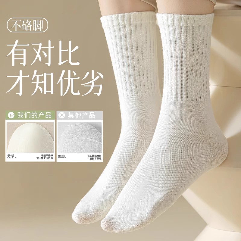 棉伙棉伴海藻袜舒适抗菌防臭男女商务运动纯色裸感中筒袜