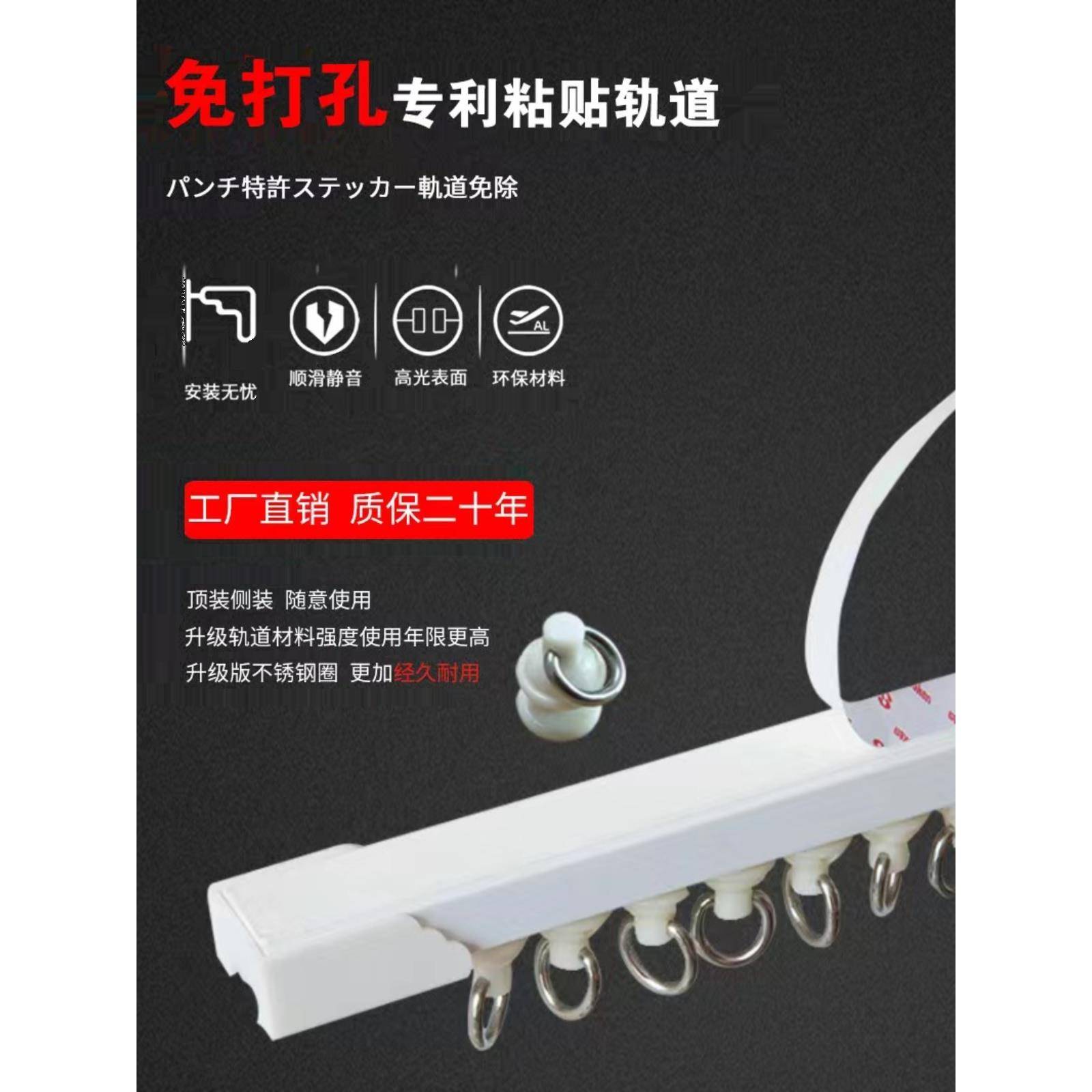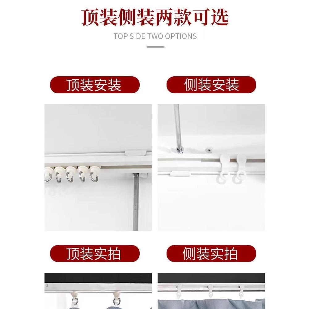 不干胶免打孔凸窗阳台窗帘滑轨侧顶装 附件杆 静音超薄导轨挂钩式