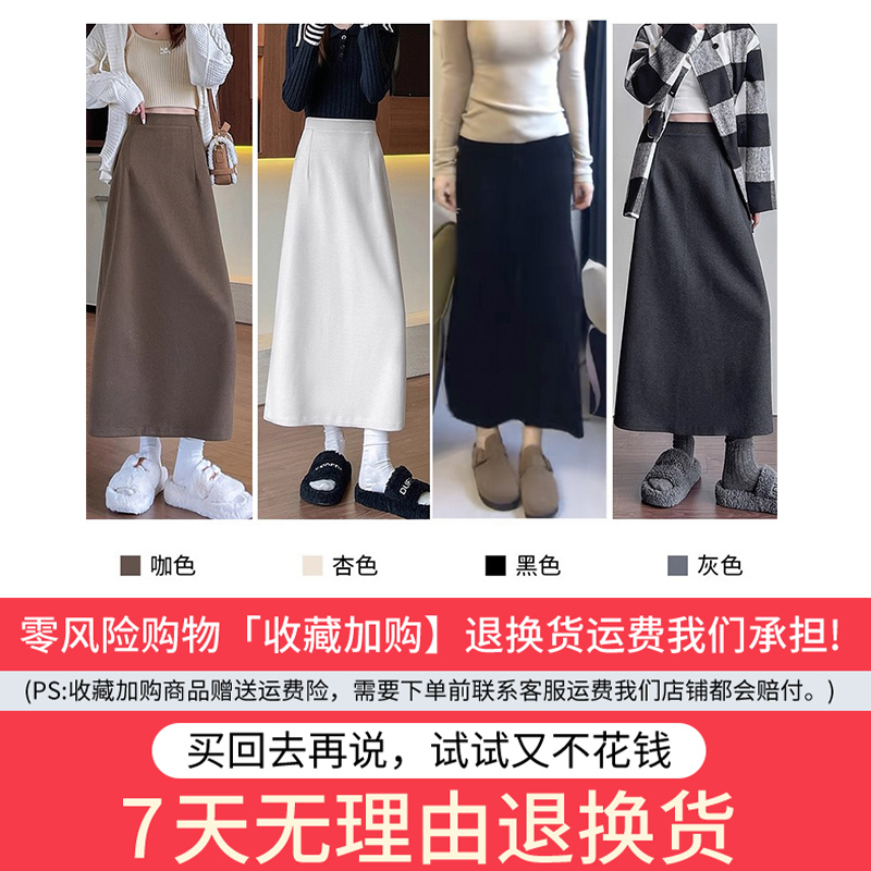 小个子包臀裙 高腰a字垂感中长款 黑色毛呢半身裙女春秋季 2025新款