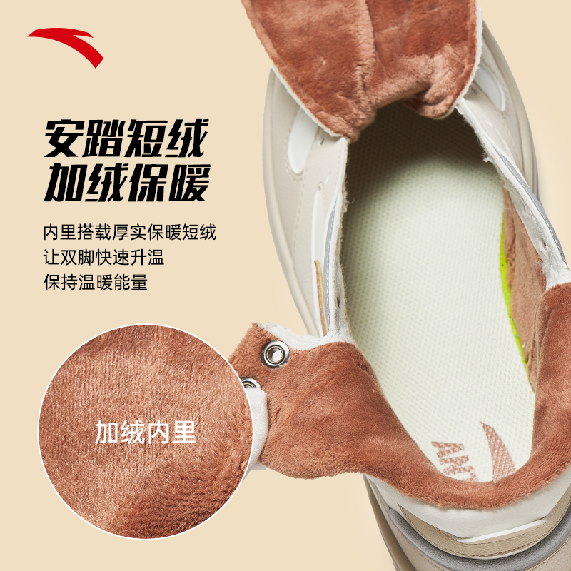 秋季 女2025新款 鞋 子皮面防水女款 安踏女鞋 休闲运动鞋 零感高帮板鞋