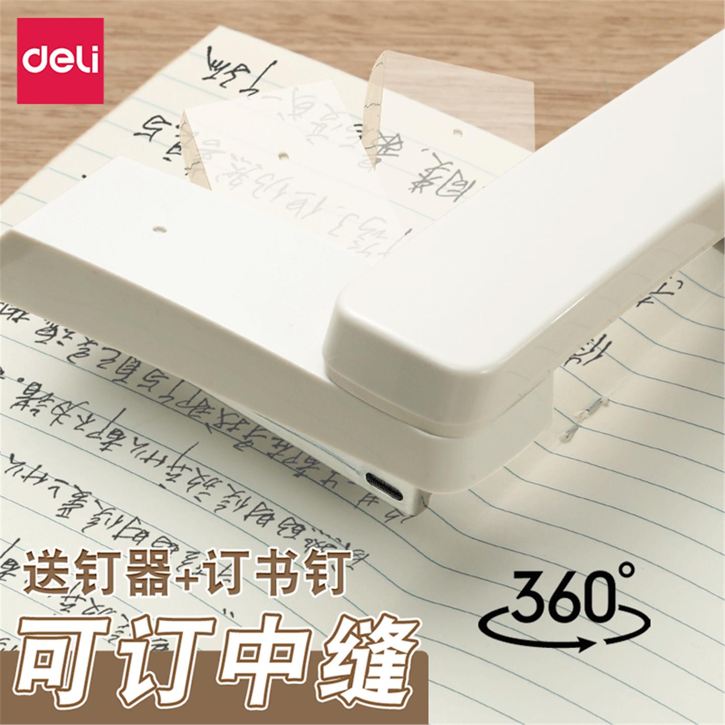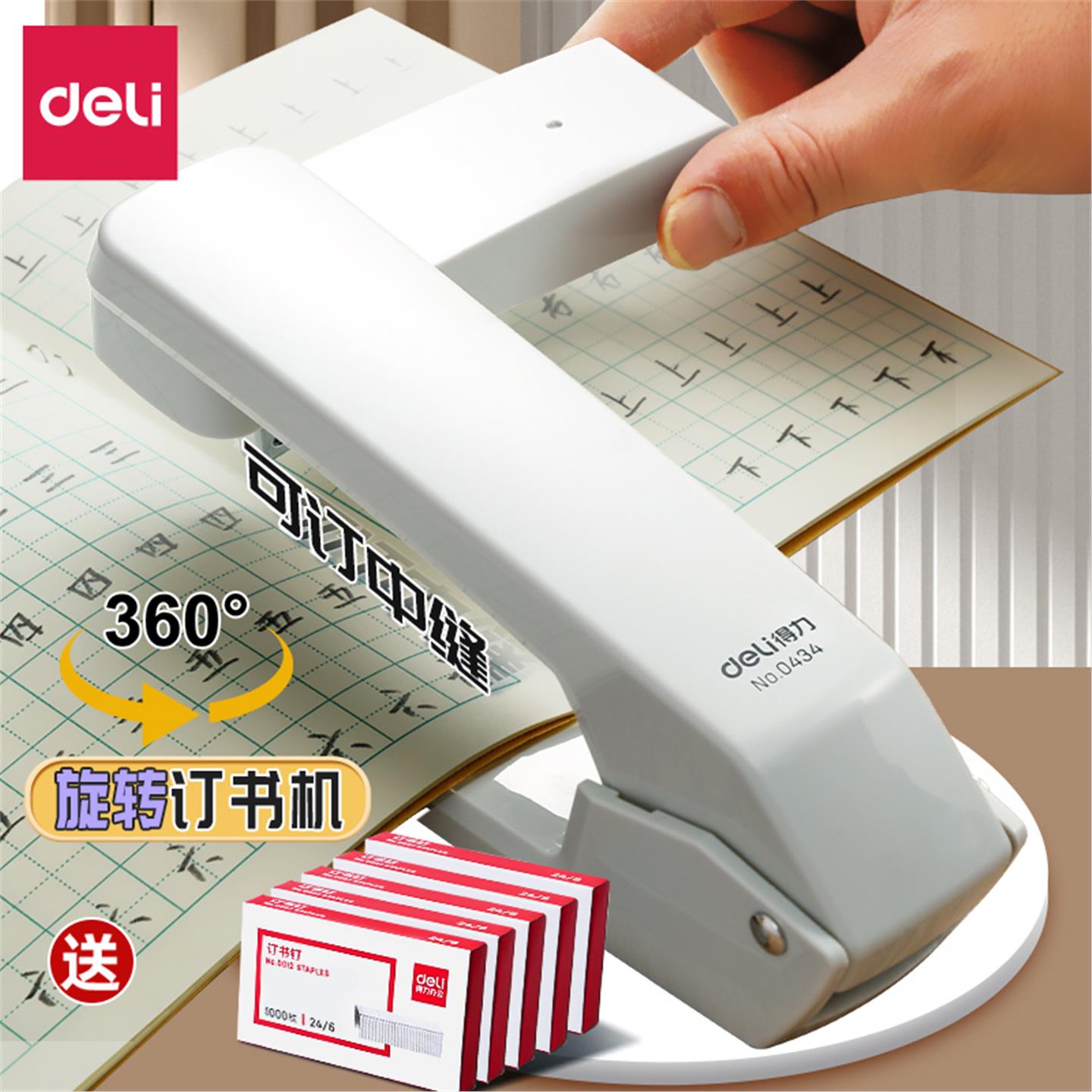 得力可旋转订书机大号学生用订书器家用型多功能办公用省力定厚书迷你小号钉可订中缝装 订用品重型加厚钉书机